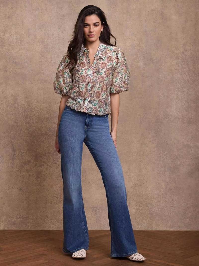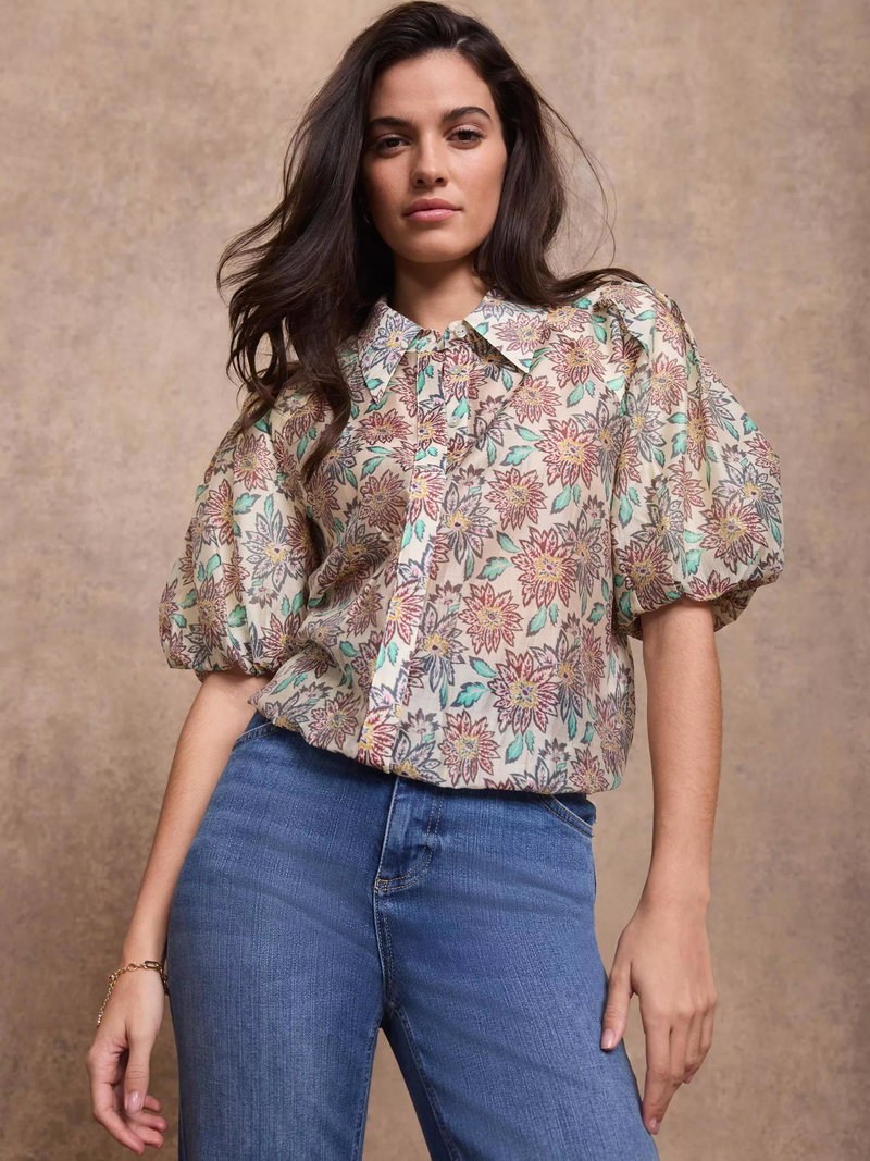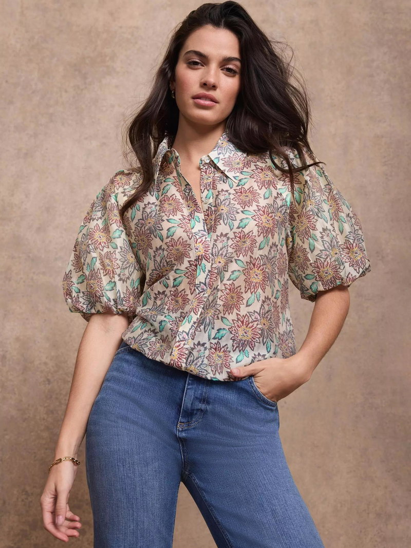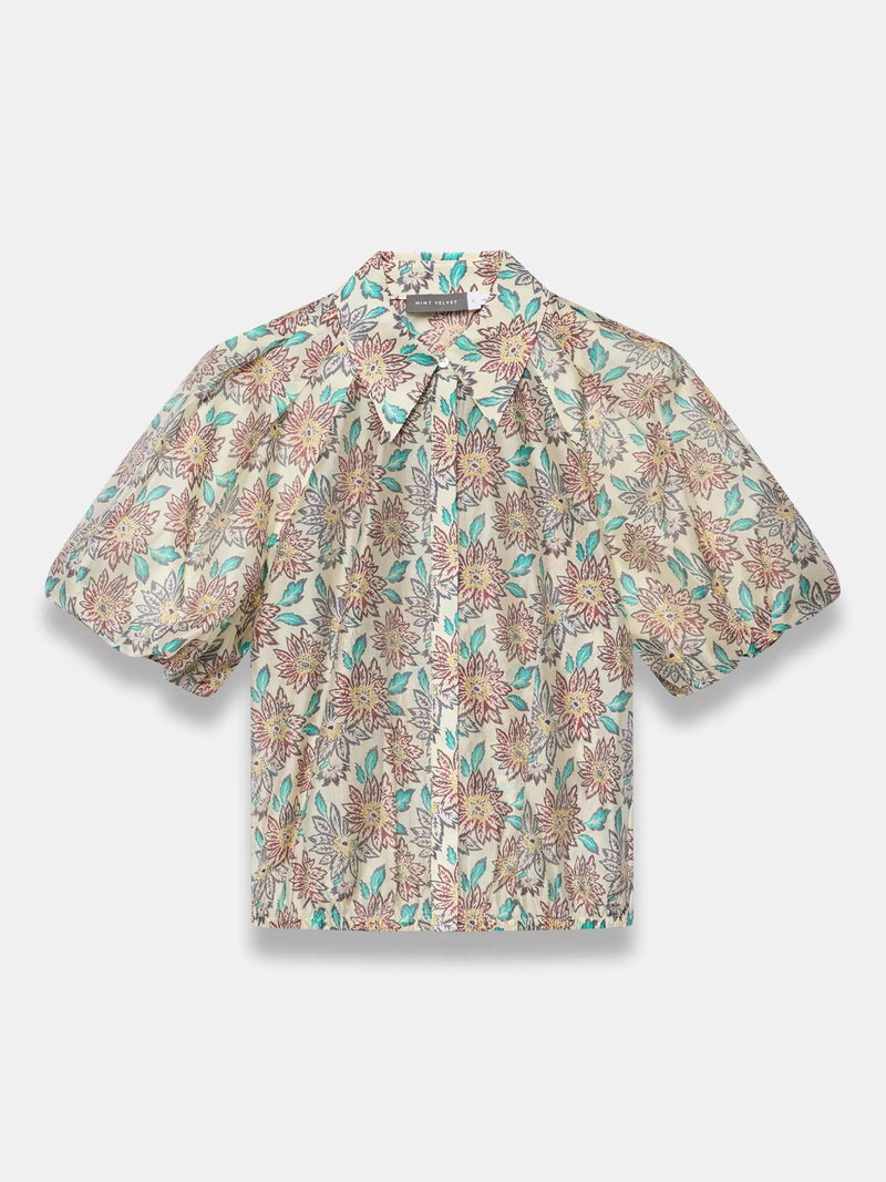 Cleverly tailored in a lightweight shirt style, this Mint Velvet top features puff sleeves, a crisp collar and elasticated hemline, finished with an intricate floral print. The elbow-length design keeps things cool and comfortable for summer days or layered transitional dressing.