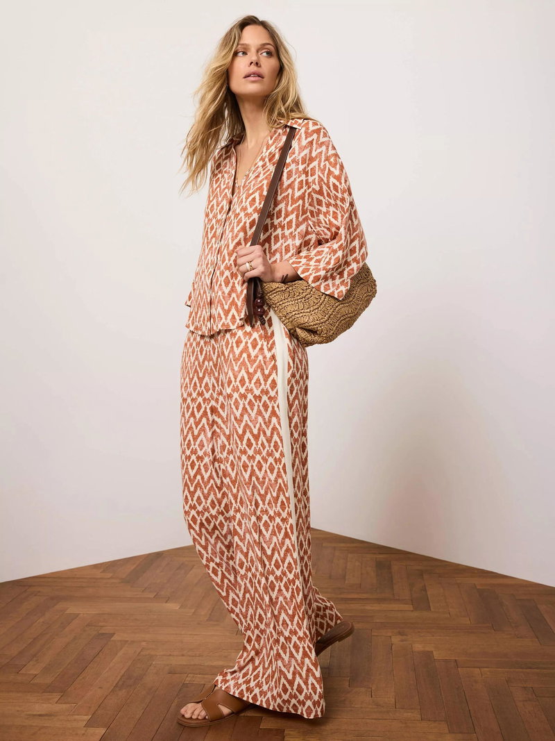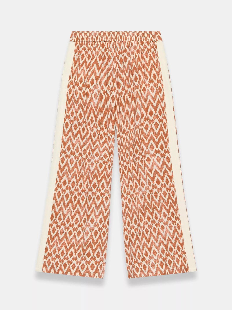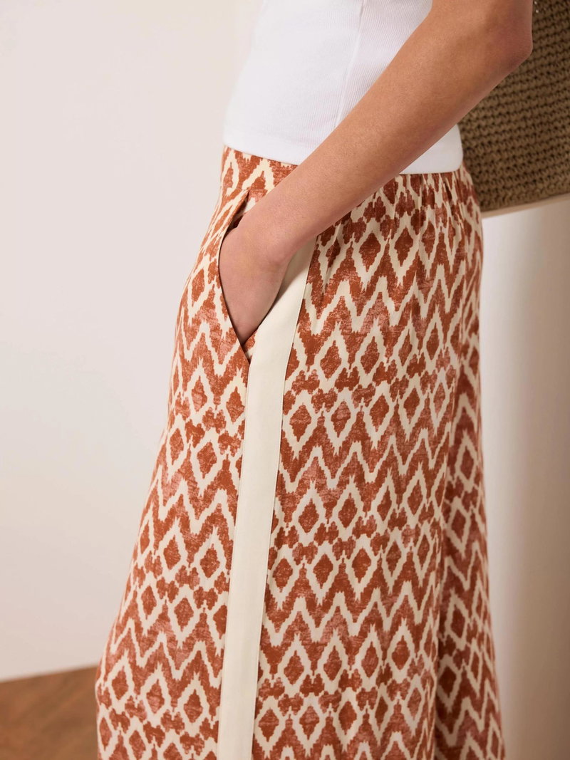 Wide-leg trousers by Mint Velvet, cut to sit mid rise with an elasticated waist, geometric stripe print and longer length hems.