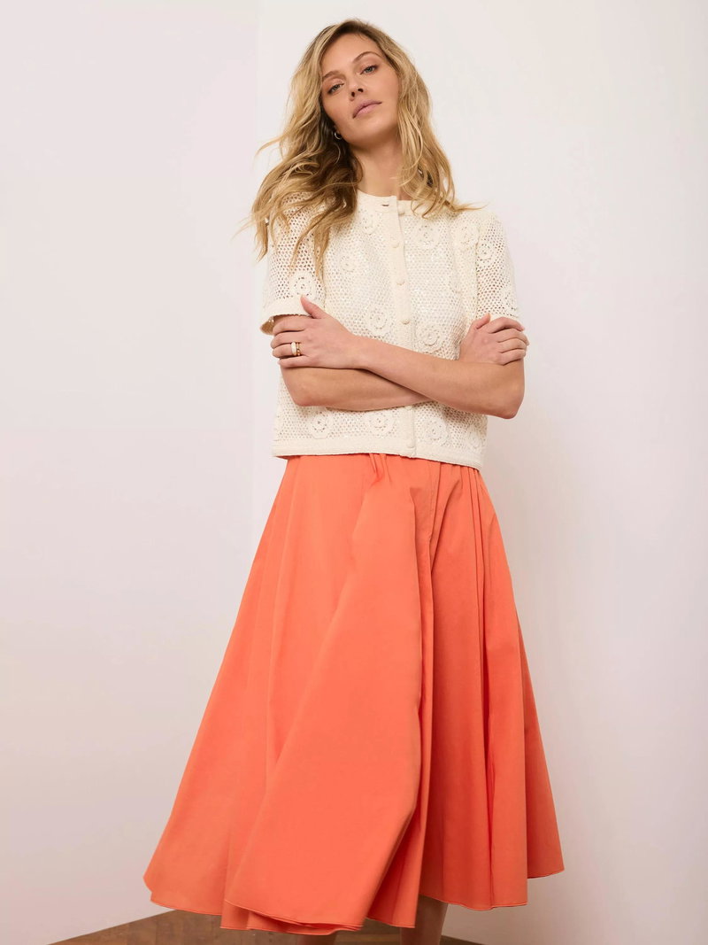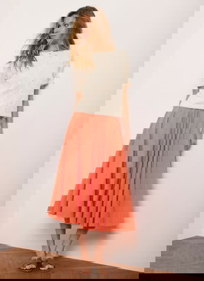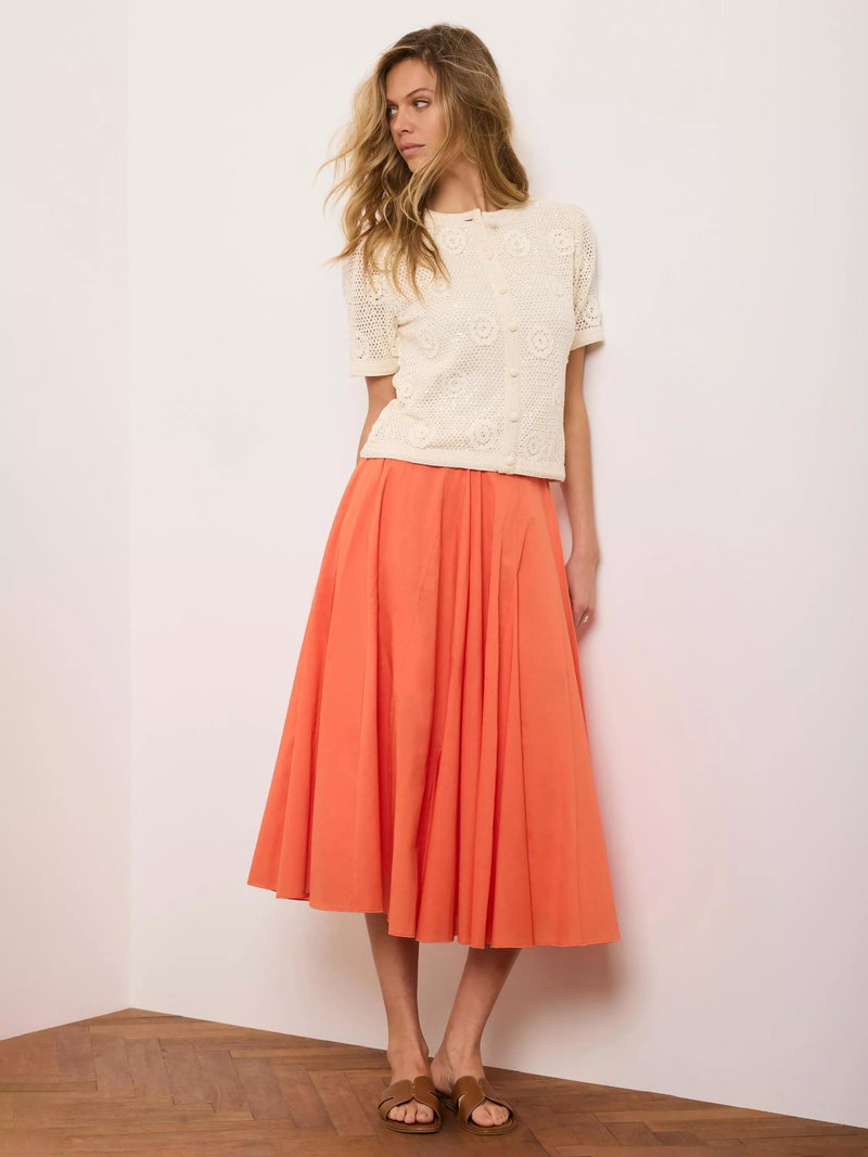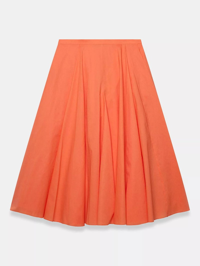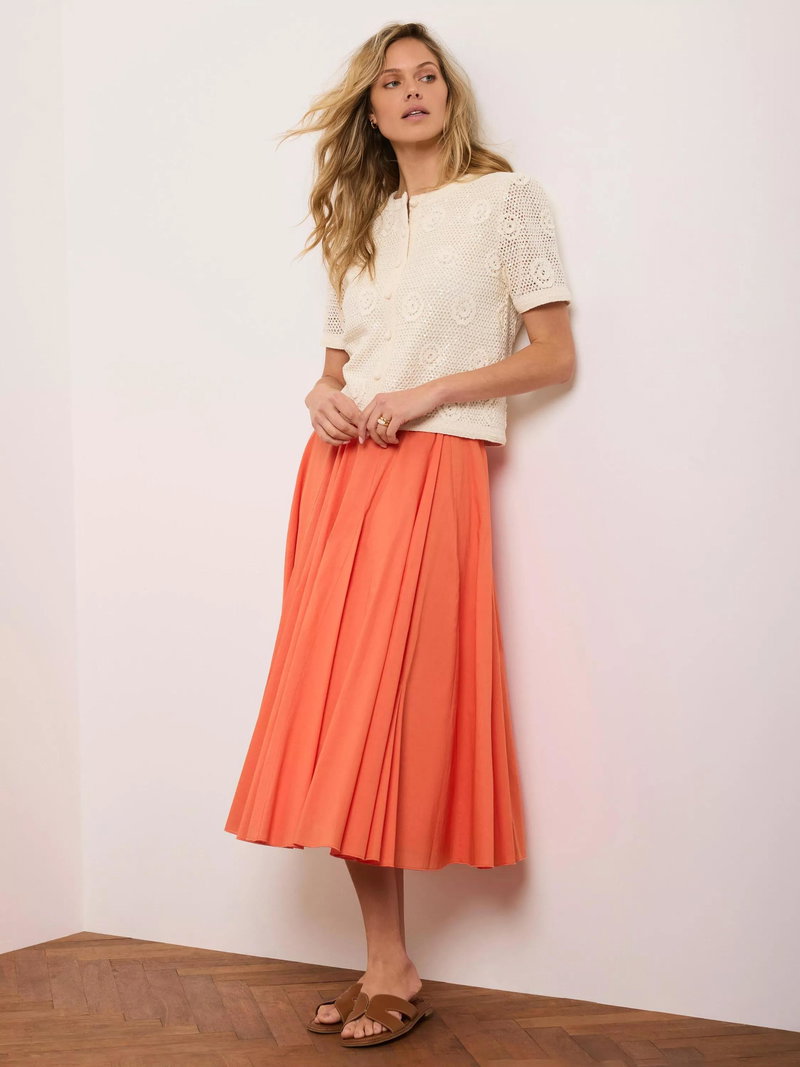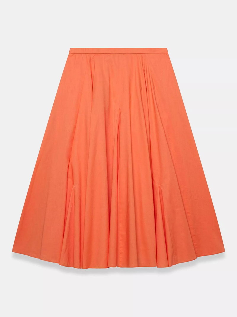 A full pleated skirt in a midi silhouette featuring godet inserts and a zip fastening through the side.