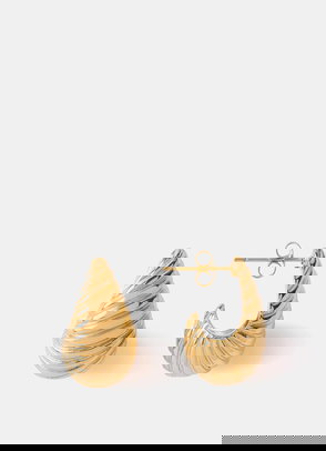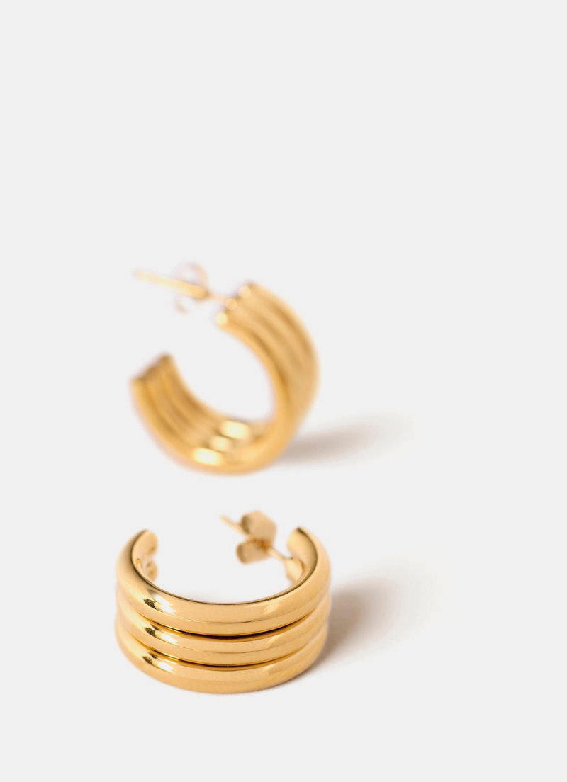 Gold stainless steel ribbed hoop earrings featuring a butterfly clasp fastening.