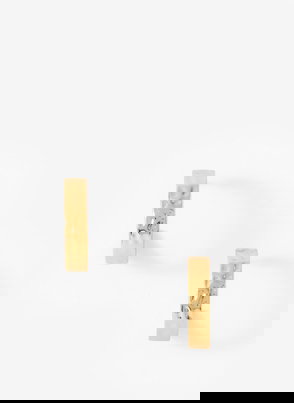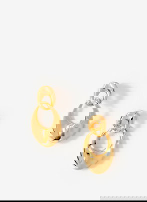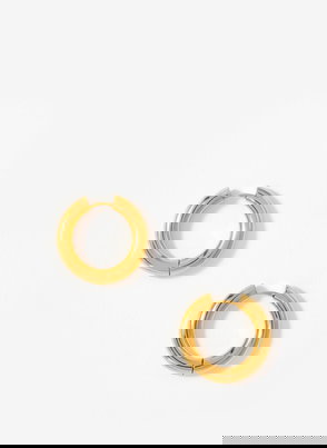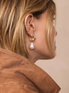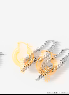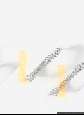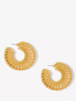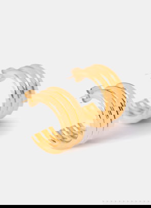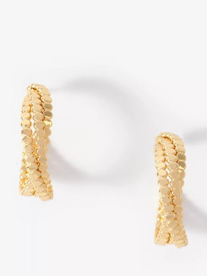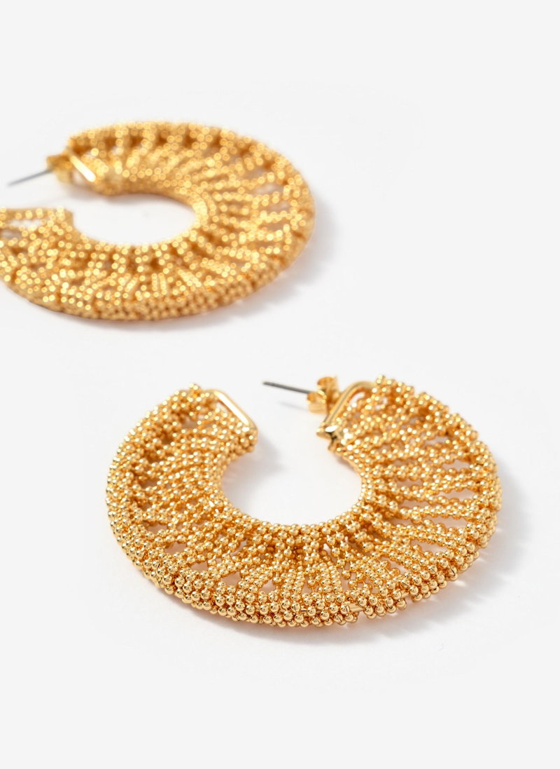 Gold tone textured half hoop statement earrings featuring a butterfly clasp fastening.