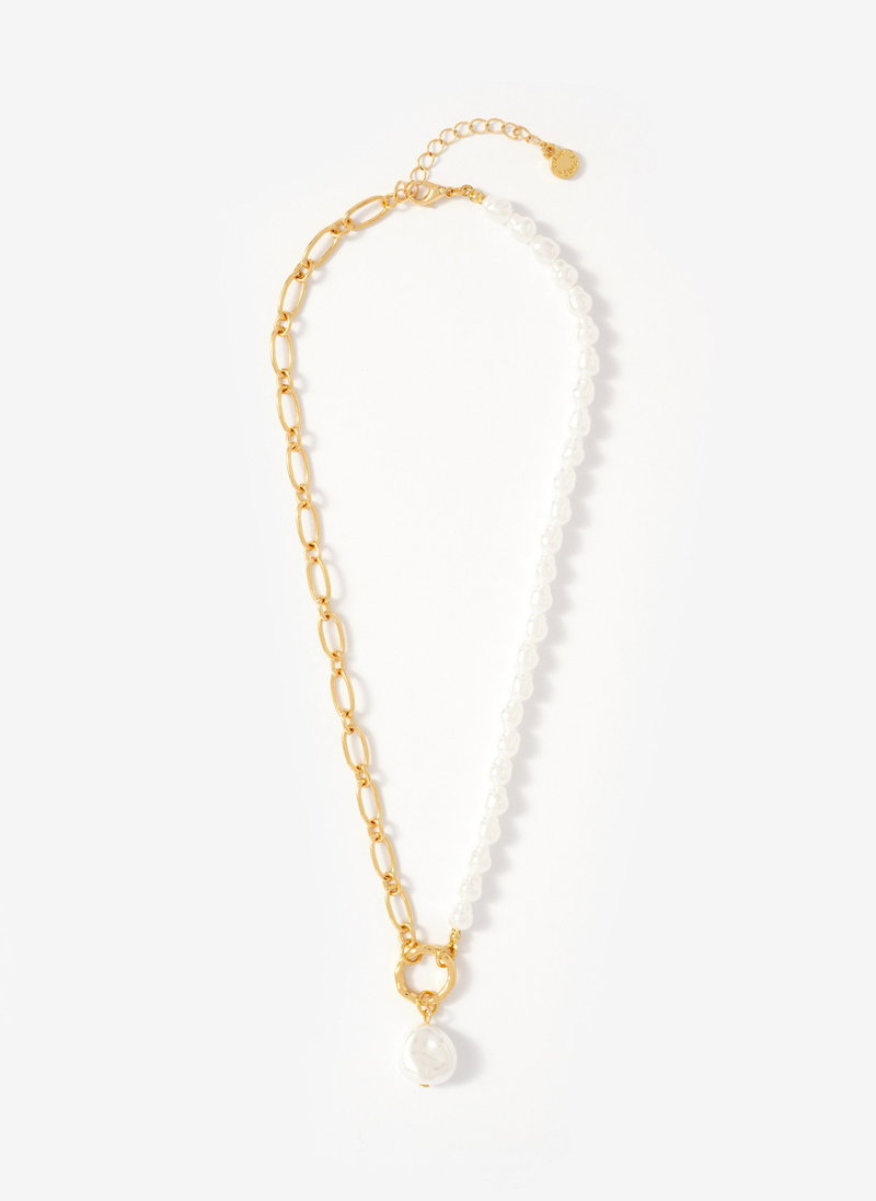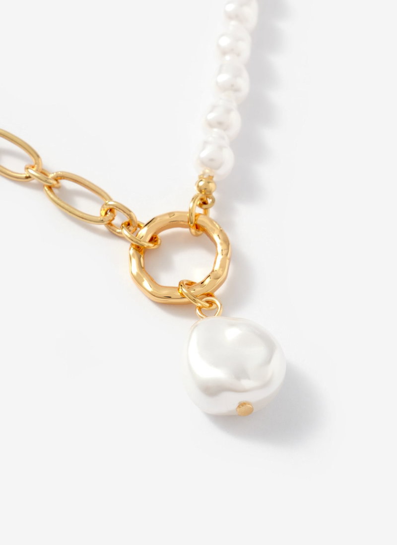 Gold Tone Chain & Pearl Drop Necklace
