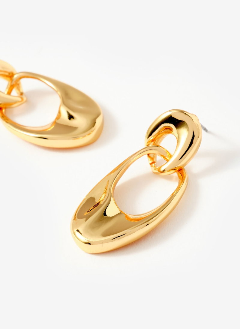 • Gold tone drop hoop link earrings featuring a butterfly clasp fastening.