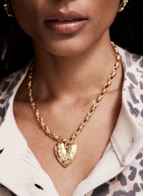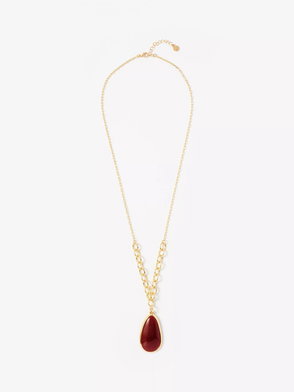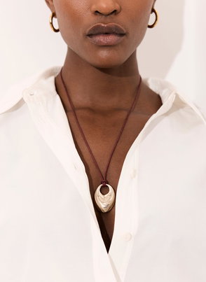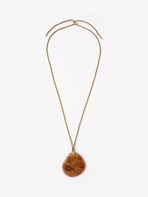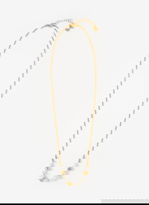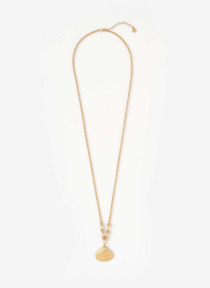 Gold tone shell pendant chain necklace featuring an adjustable lobster clasp fastening.