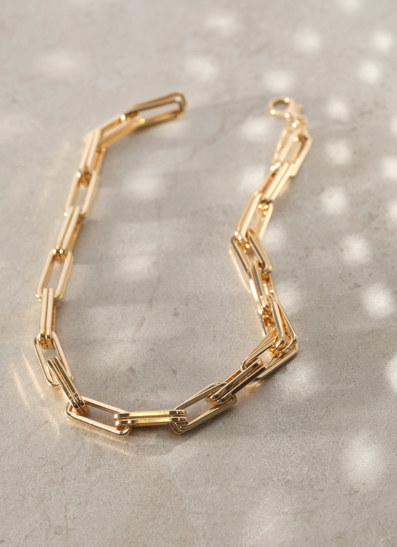 Gold Tone Square Link Necklace