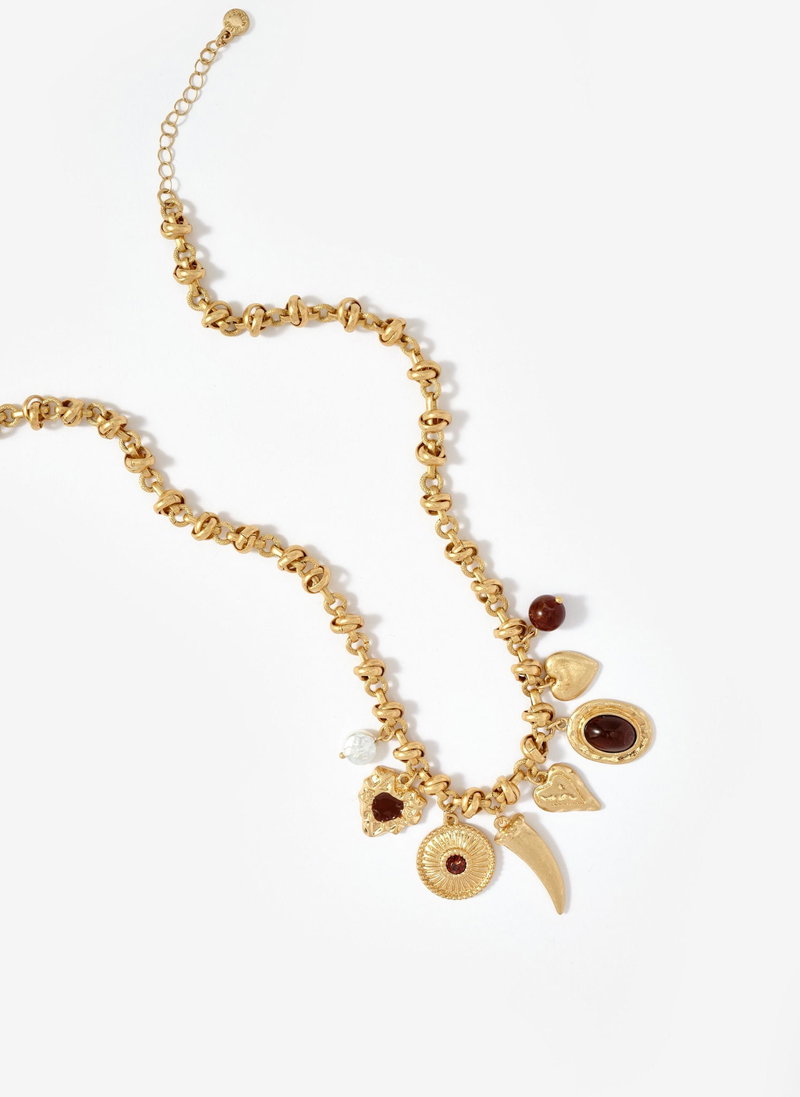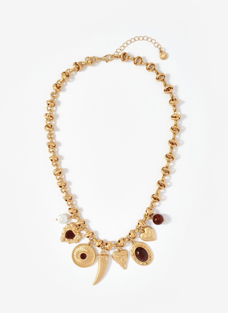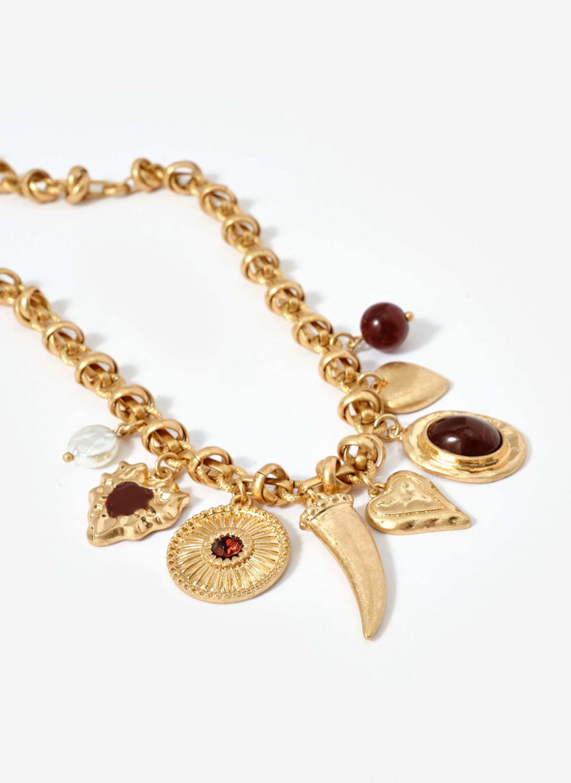 Gold Tone Statement Charm Necklace
