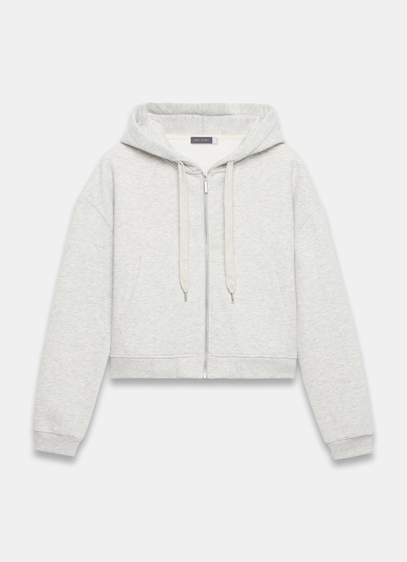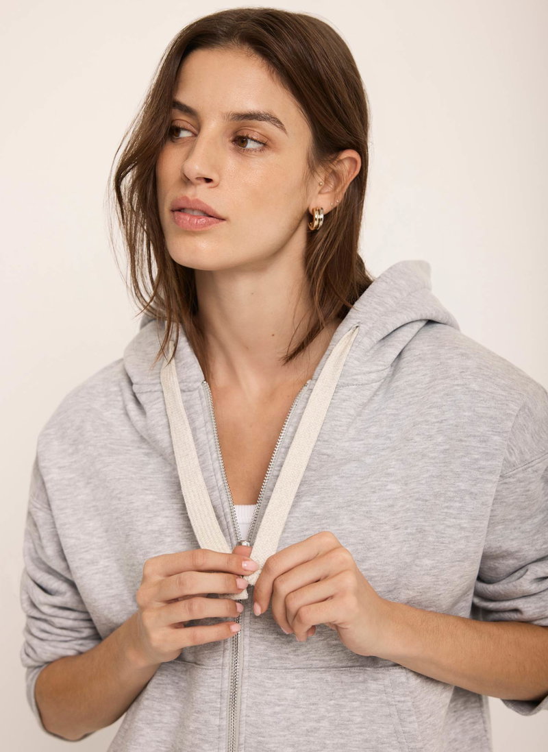 Grey hoodie featuring long sleeves, pocket pockets and a zip fastening through the front.