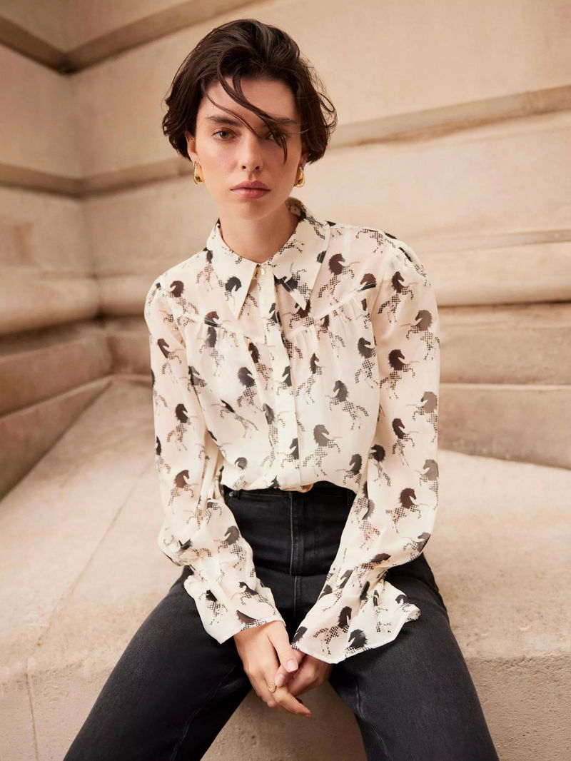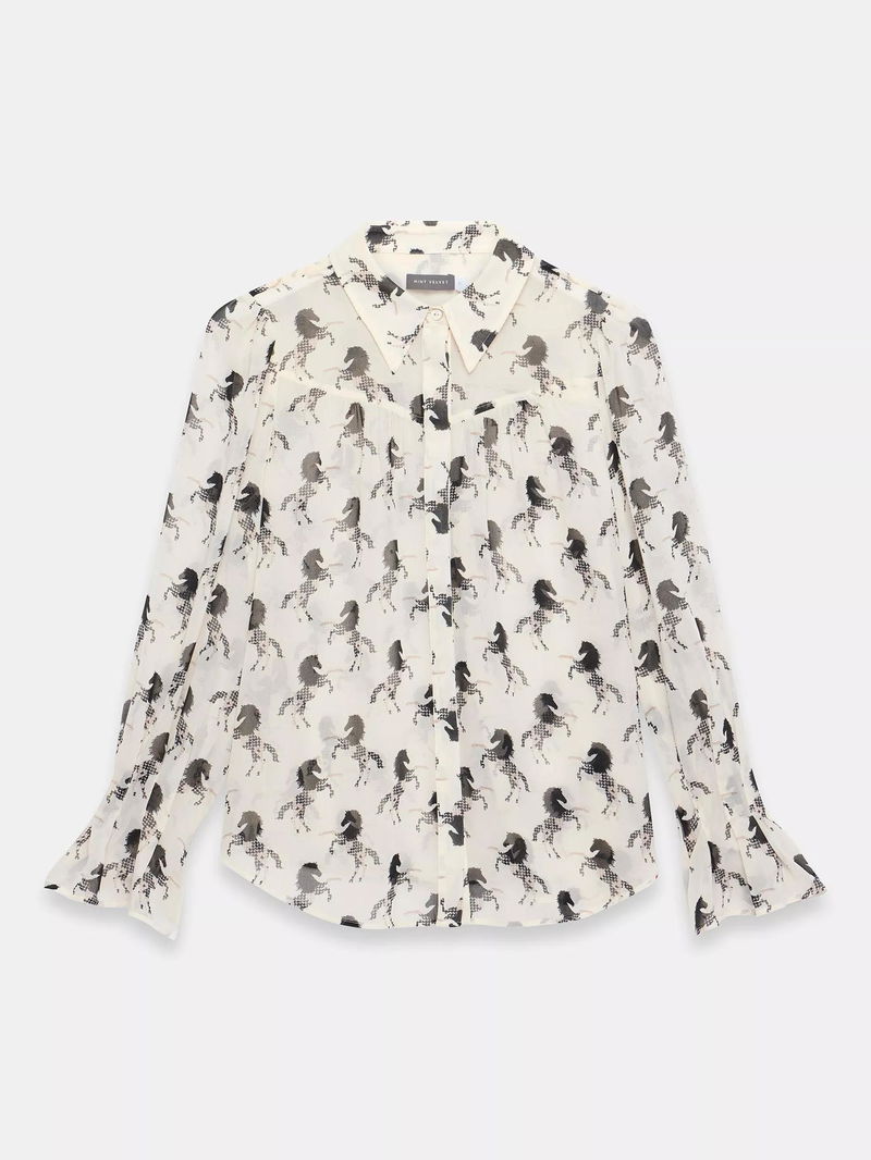 Horse Print Sheer Blouse