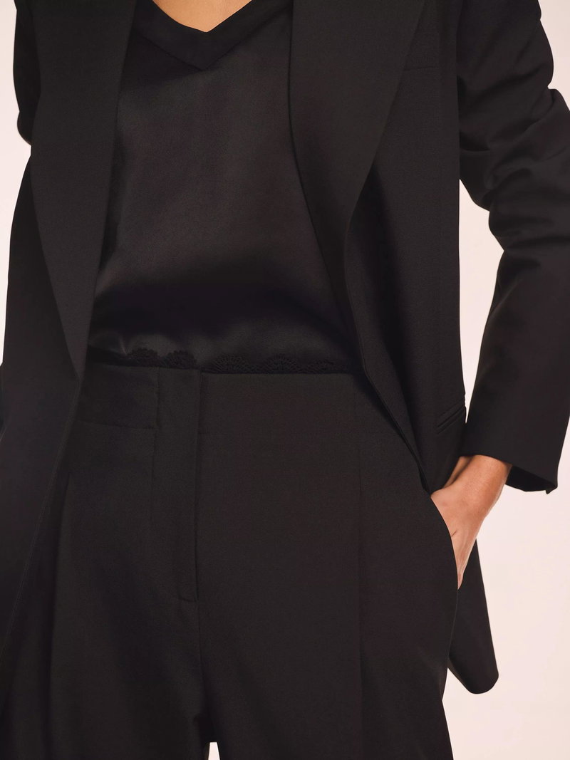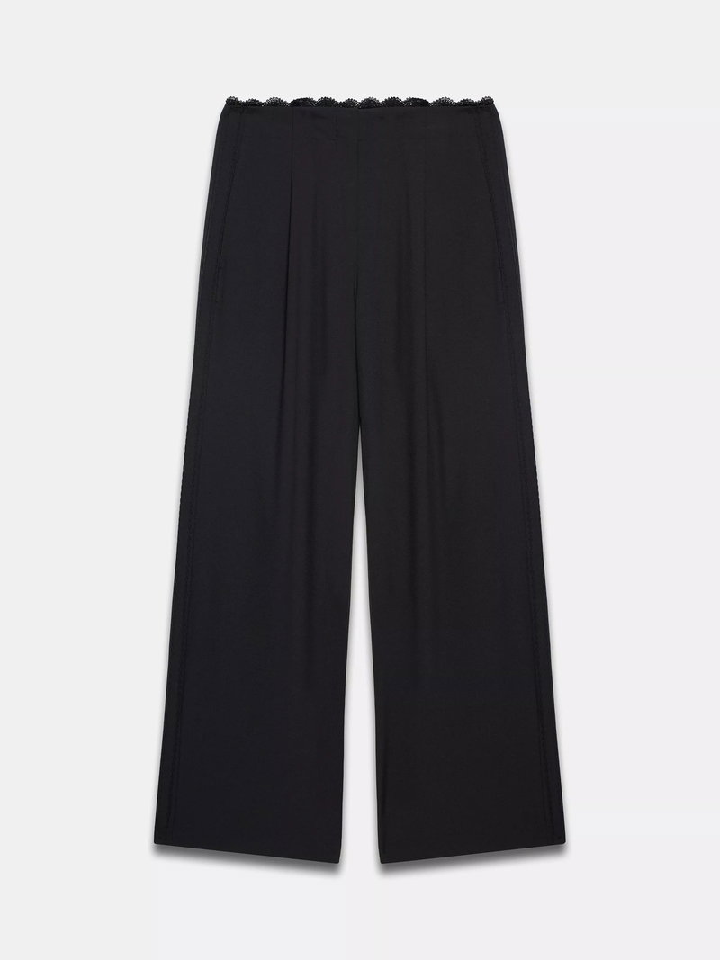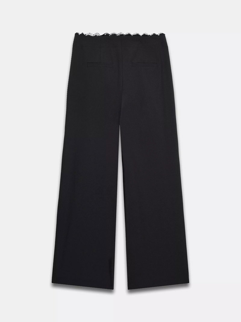 A pair of wide-leg trousers by Mint Velvet, cut to sit high on the hips with a delicate lace trim.