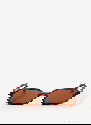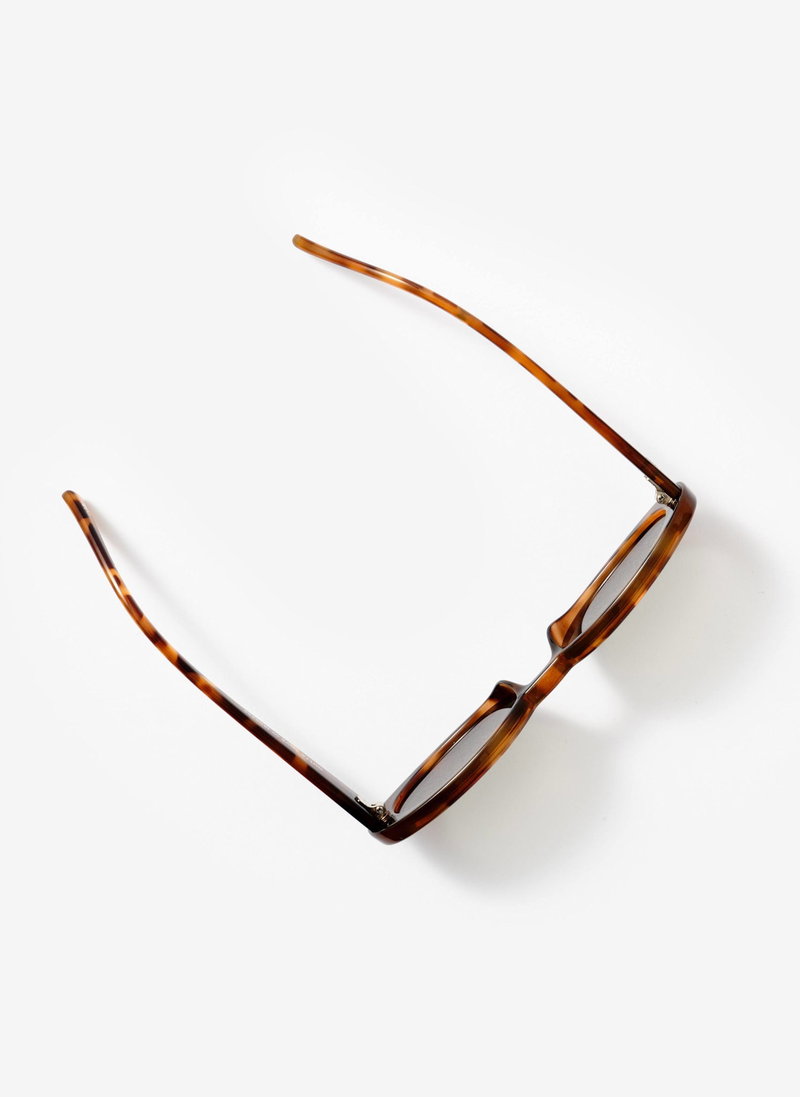 Brown tortoiseshell rounded rectangular sunglasses featuring a tinted lens.