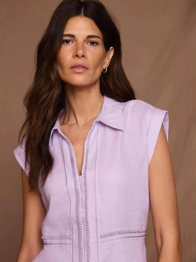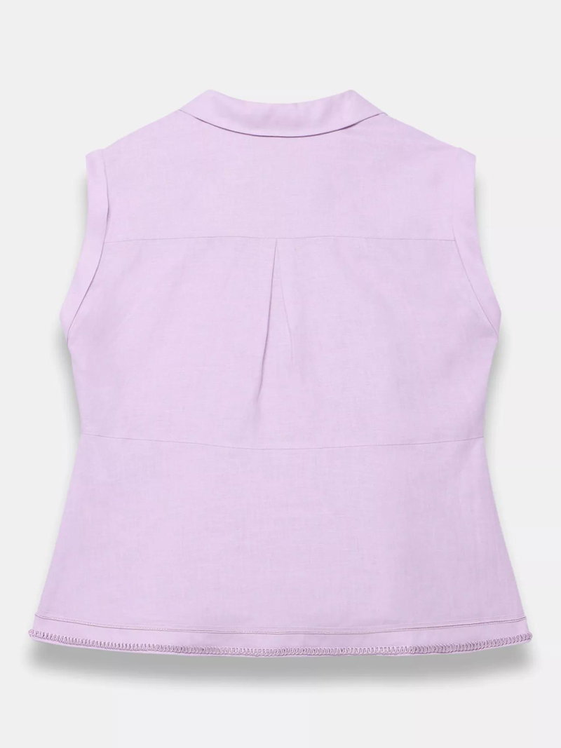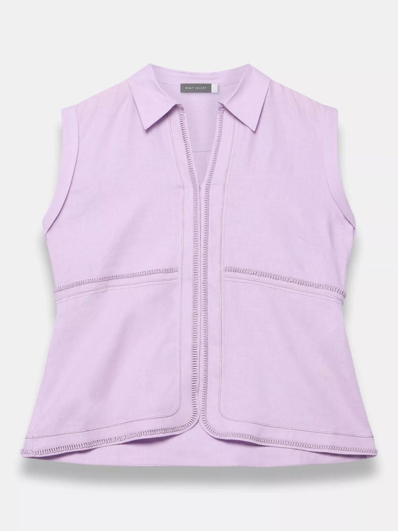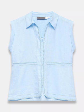 This sleeveless linen shirt delivers sharp detailing with a soft, breathable feel. The smart collar and neat button fastening make it easy to style for your summer plans.