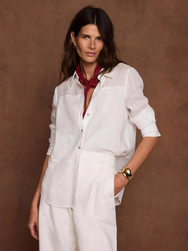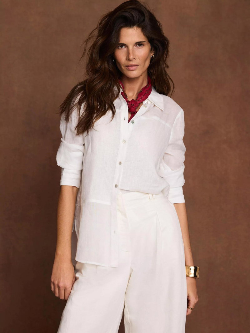 An everyday shirt by Mint Velvet, made from light, breathable linen. With a collar neck and long sleeves, the plain design means it goes with everything. Casual, cool, and perfect from morning on.