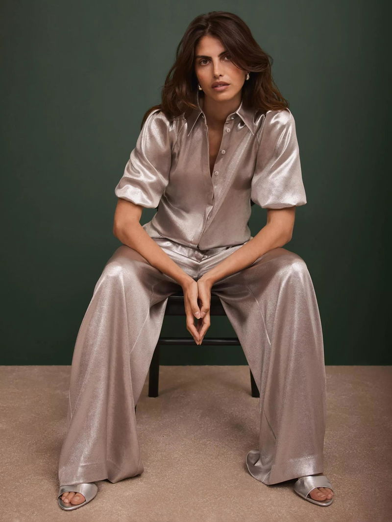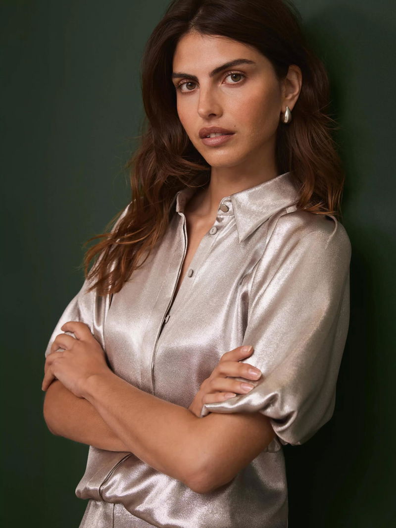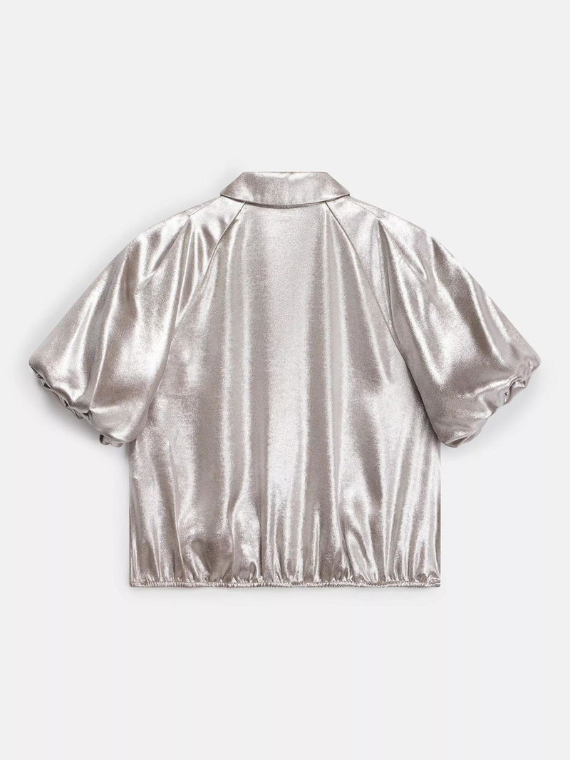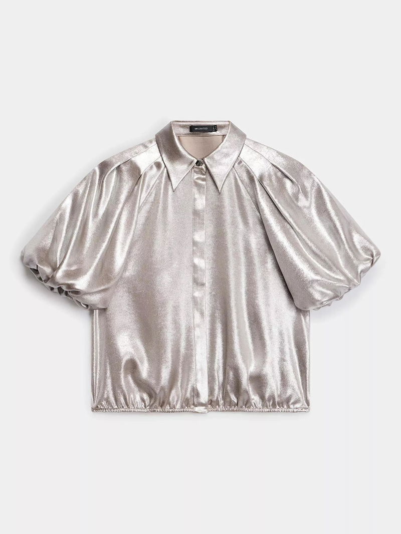 Metallic Puff Sleeve Blouse
