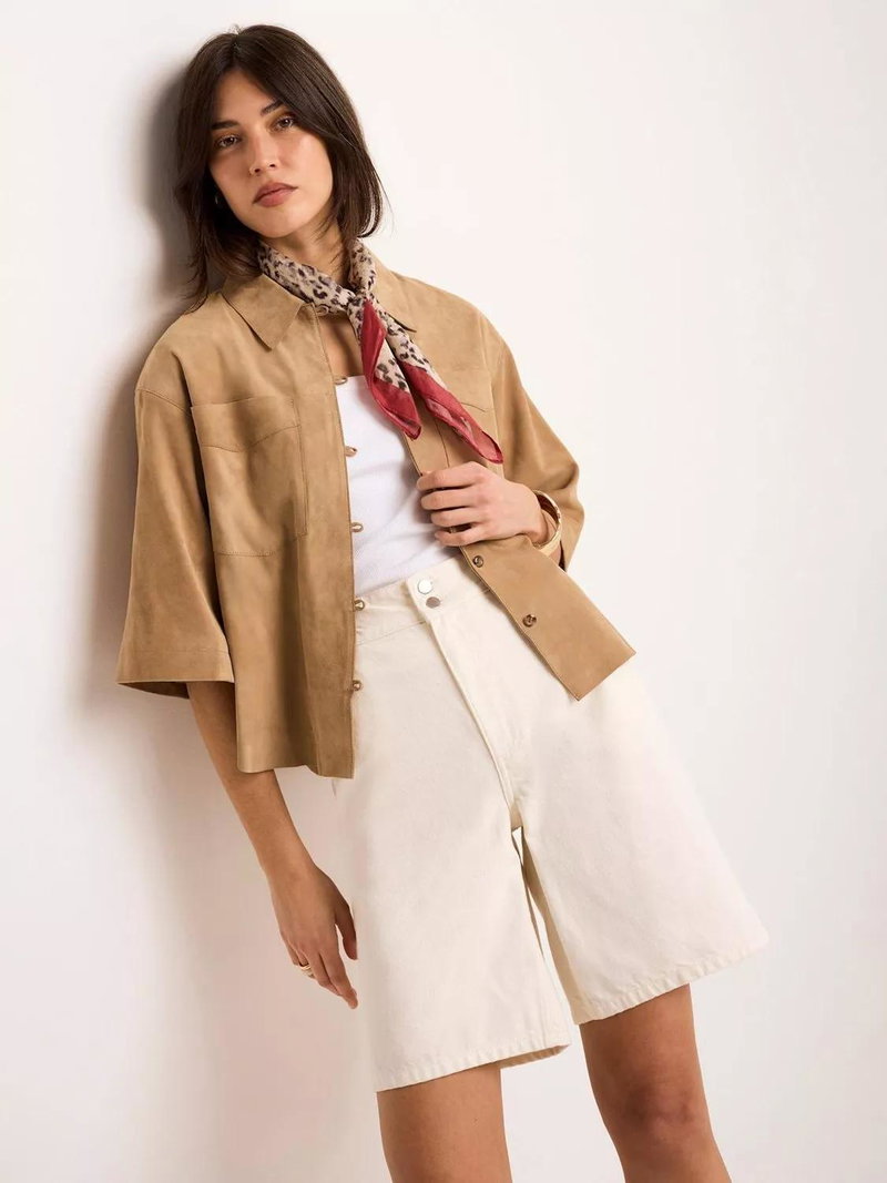 Crafted from 100% cotton, these mid-length shorts prioritize breathability and a soft hand-feel, offering a crisp, structured silhouette that remains comfortable throughout the day.