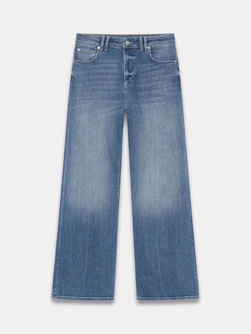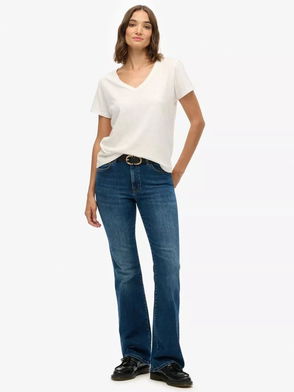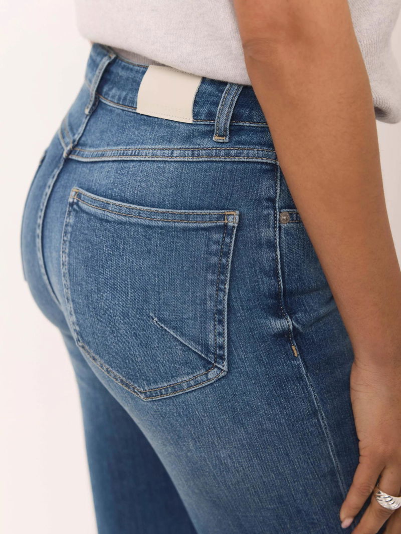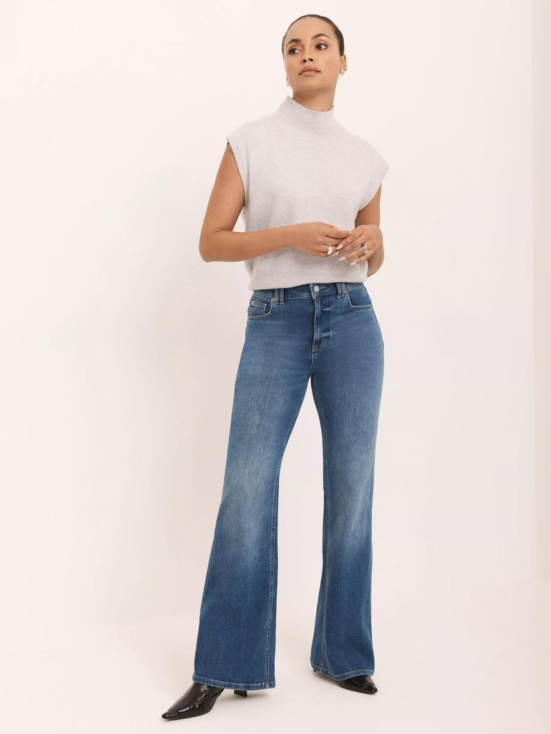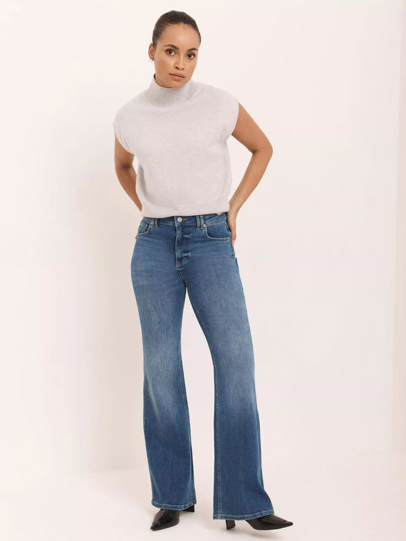 A pair of leg-lengthening jeans that fit slim through the hips and thighs before dramatically flaring from the knee.