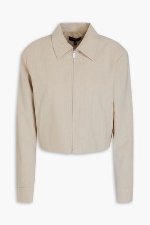 A jacket featuring a ribbed collar, long cinched sleeves, flap pockets, elasticated ribbed waistband and a zip fastening through the back.