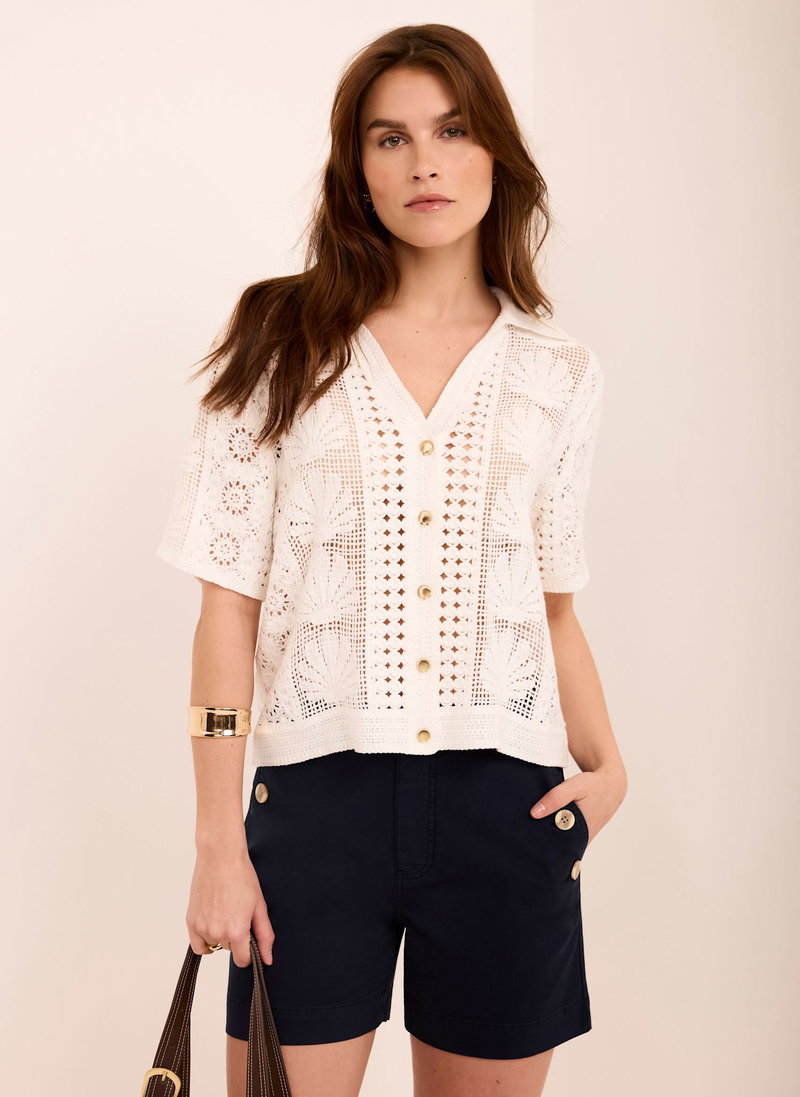 Button Front Chino Shorts.