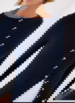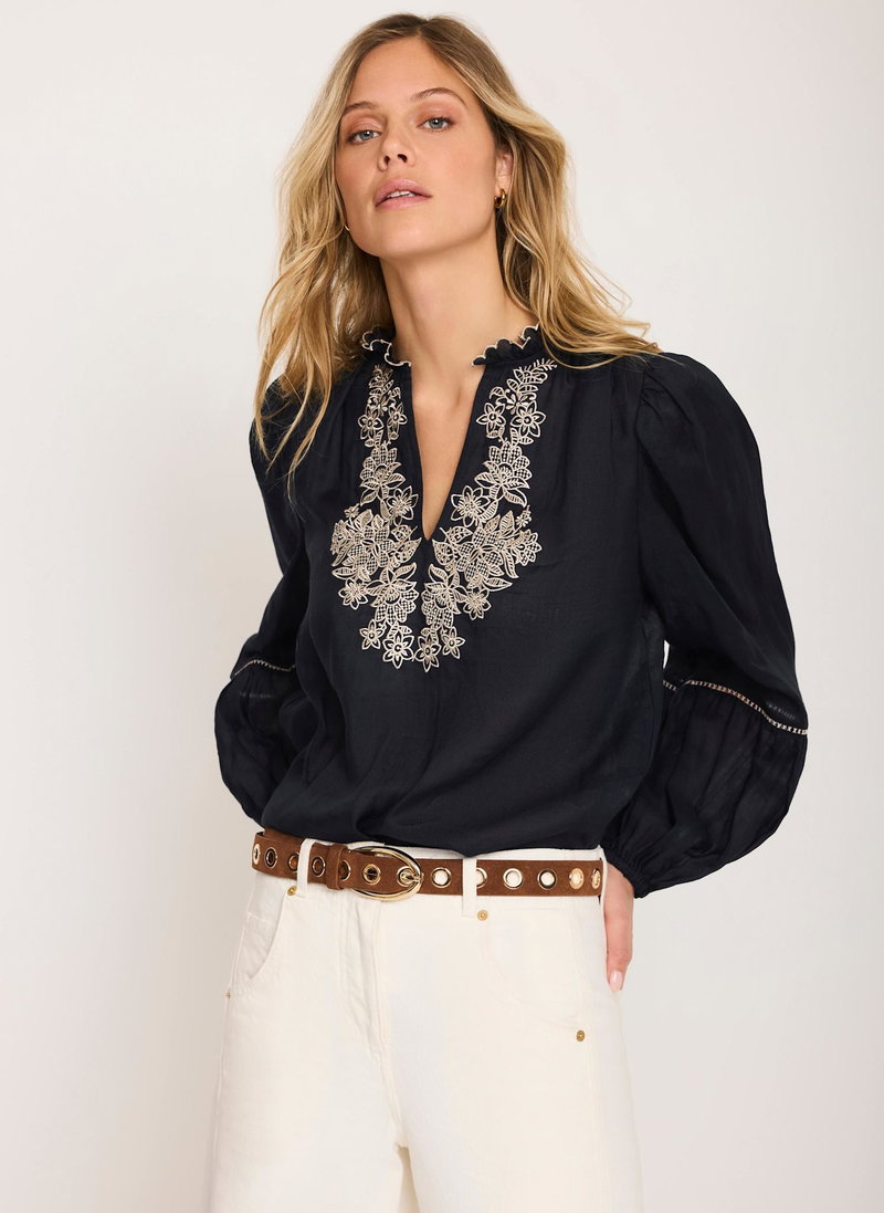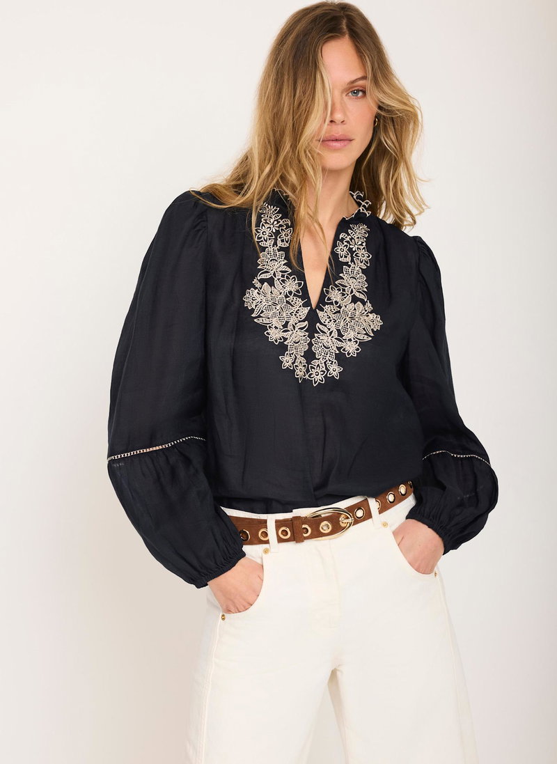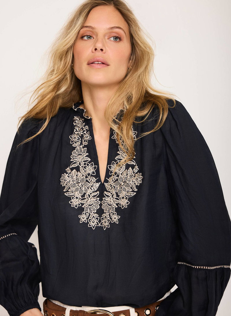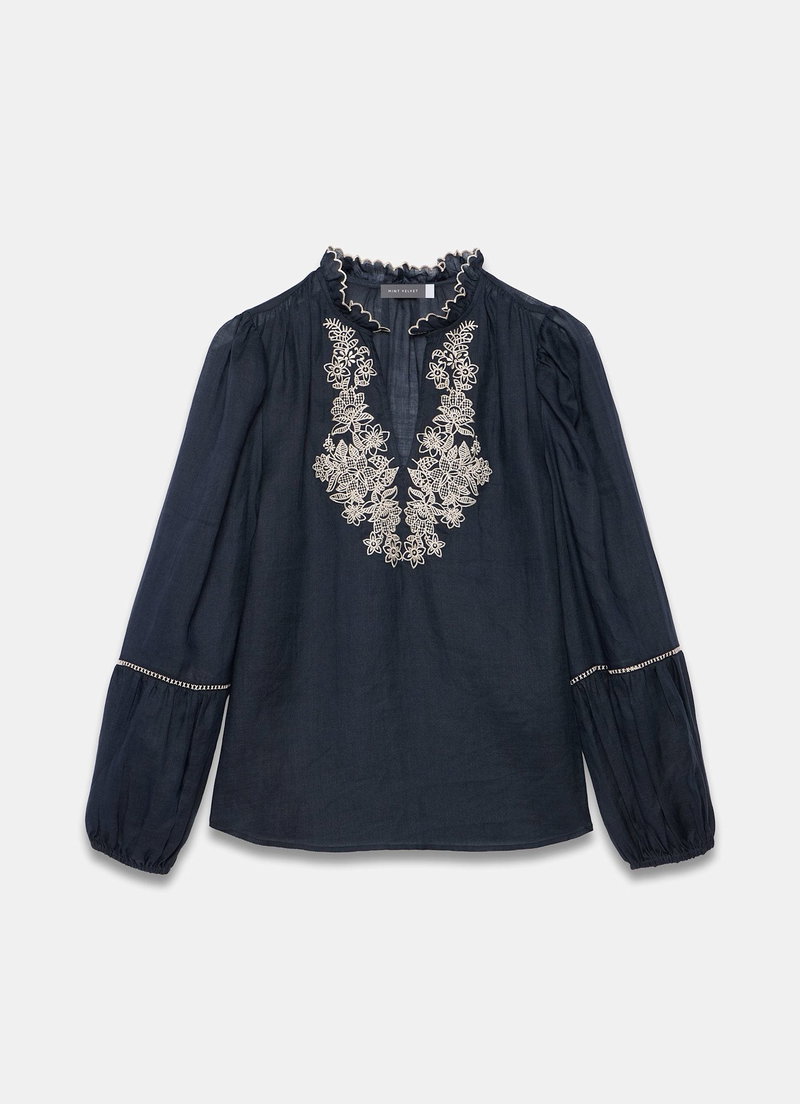 Navy Embroidered Detail Blouse