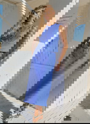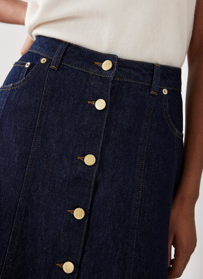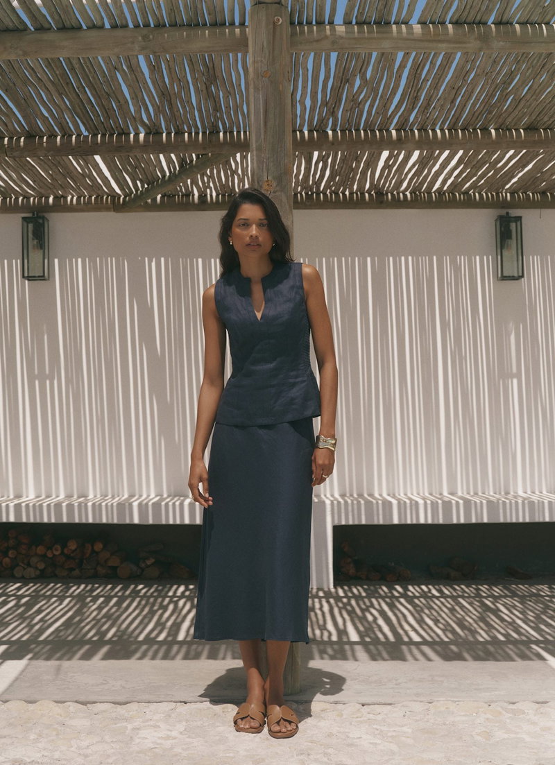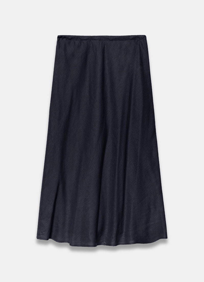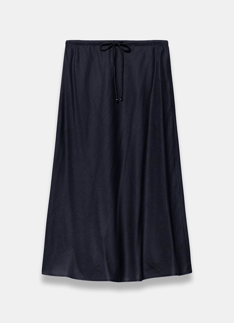 Navy Linen Midi Skirt