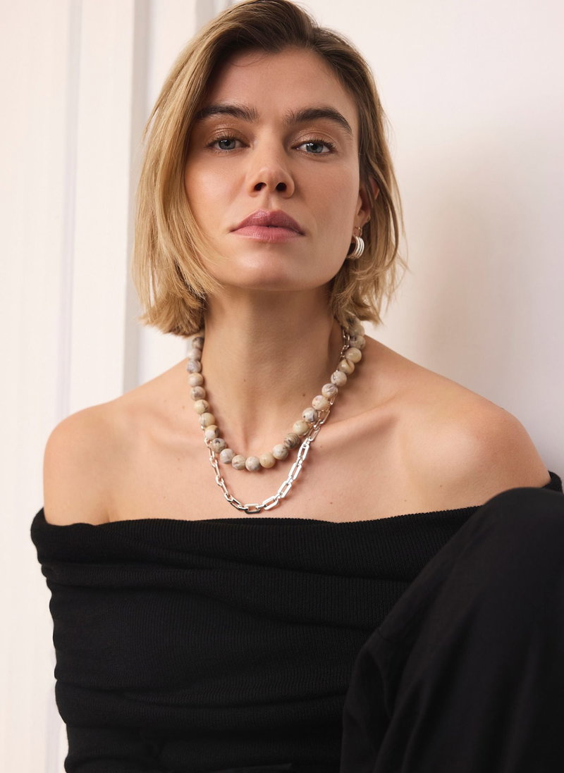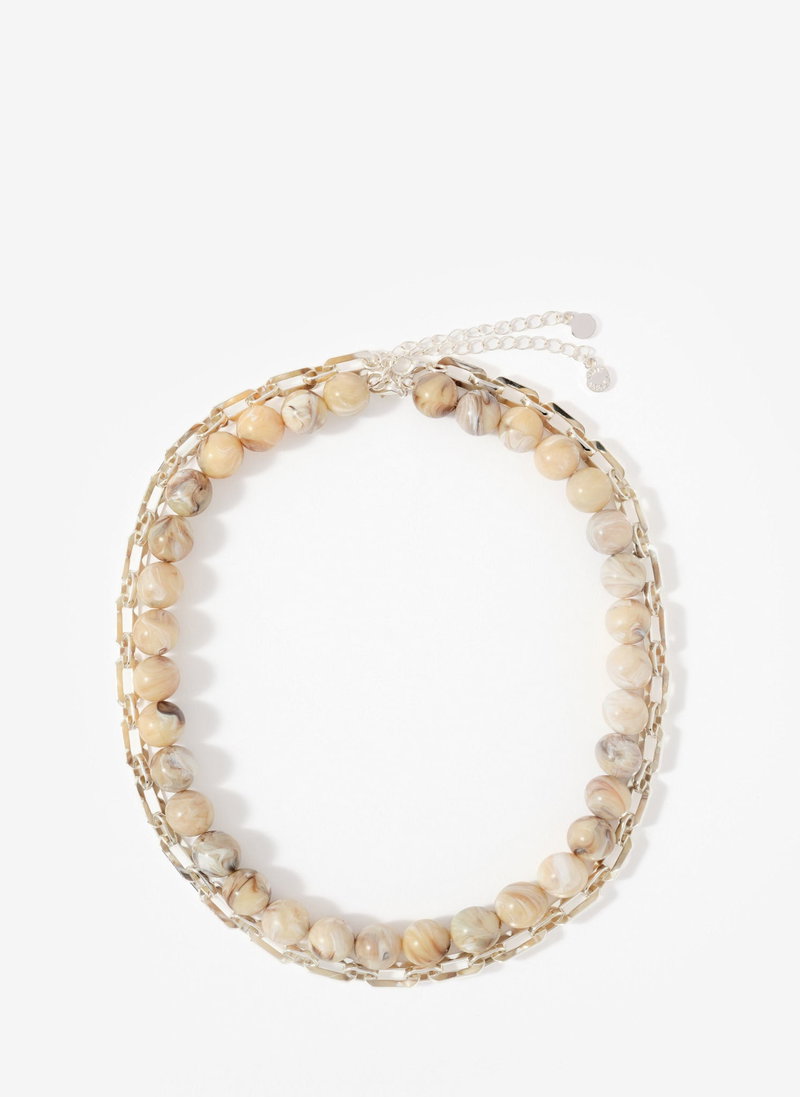 Neutral Beaded And Chain Layer Necklace