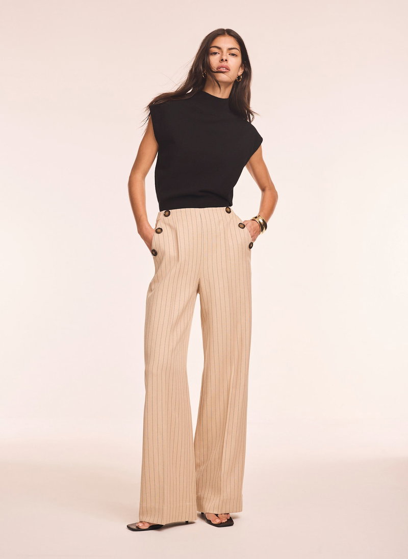 Button Front Pinstripe Trousers.