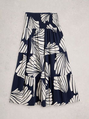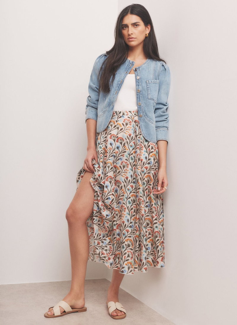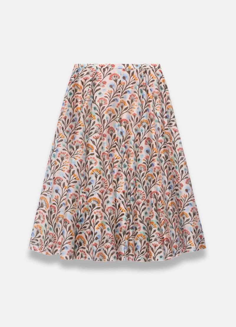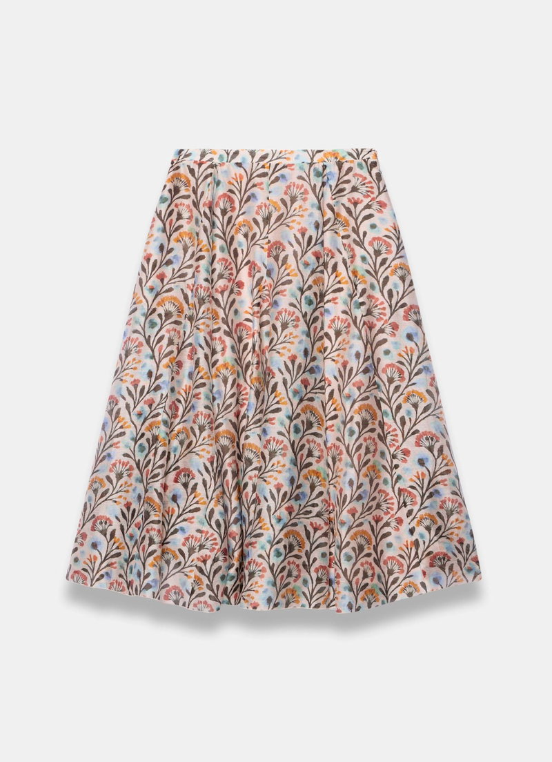 Neutral floral print full skirt in a maxi silhouette featuring a zip fastening through the side.