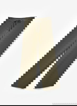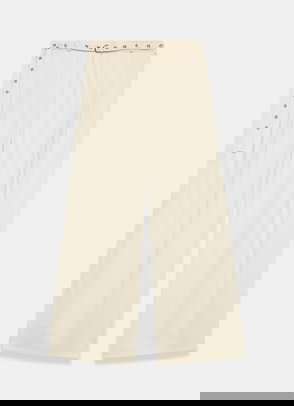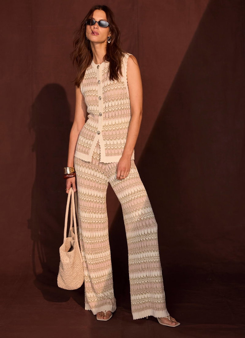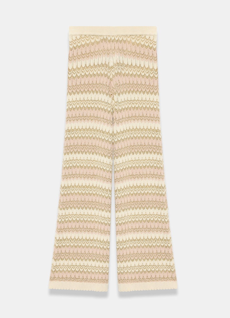 Neutral striped knit trousers.