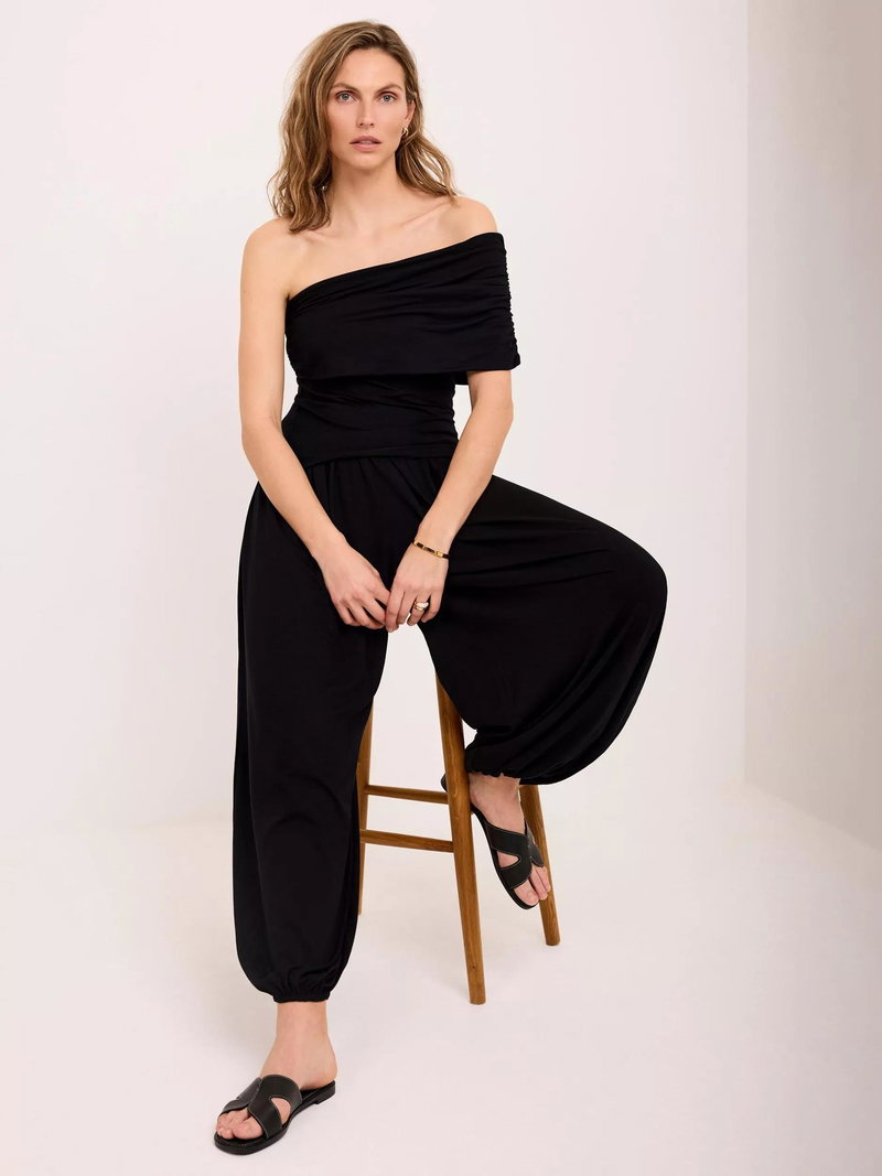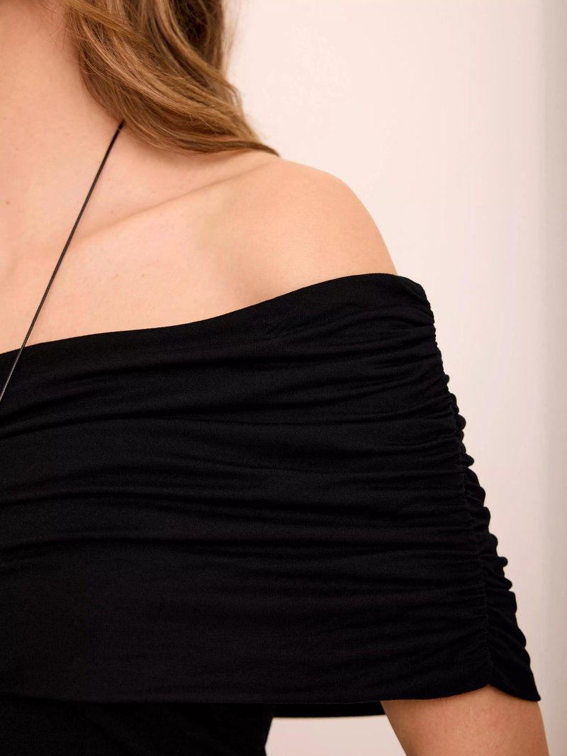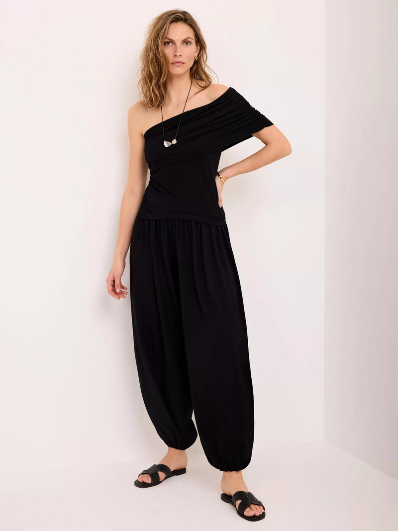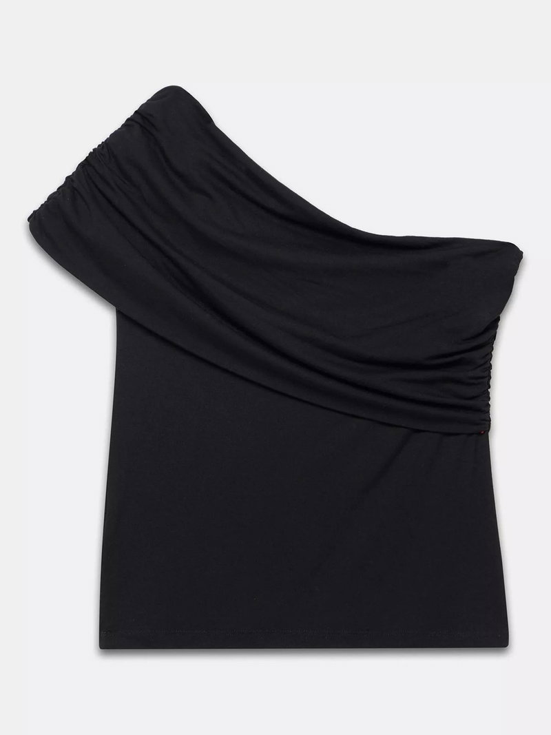 A lightweight top featuring a ruched, one-shoulder neckline.