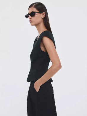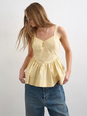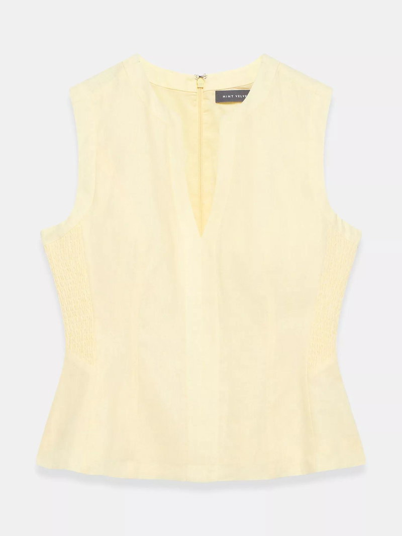 A sleeveless top featuring a V-neckline, peplum hemline and zip fastening through the back.