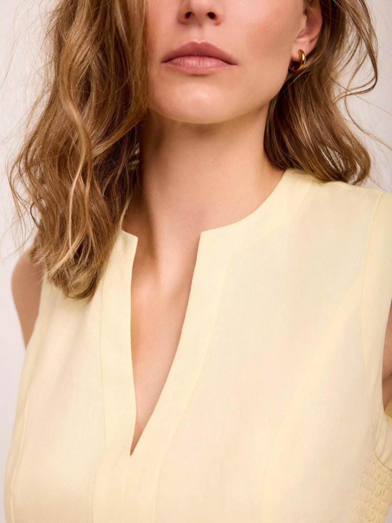Made with at least 50% linen. Linen is made from the fibres of the flax plant. Flax is resilient and can grow in poor soil, using less water than cotton to produce.'