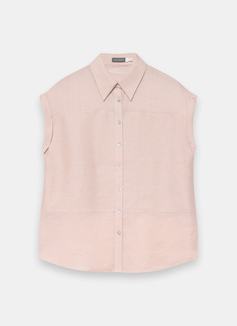 Pink shirt featuring a classic collar, short sleeves and a button fastening through the front.