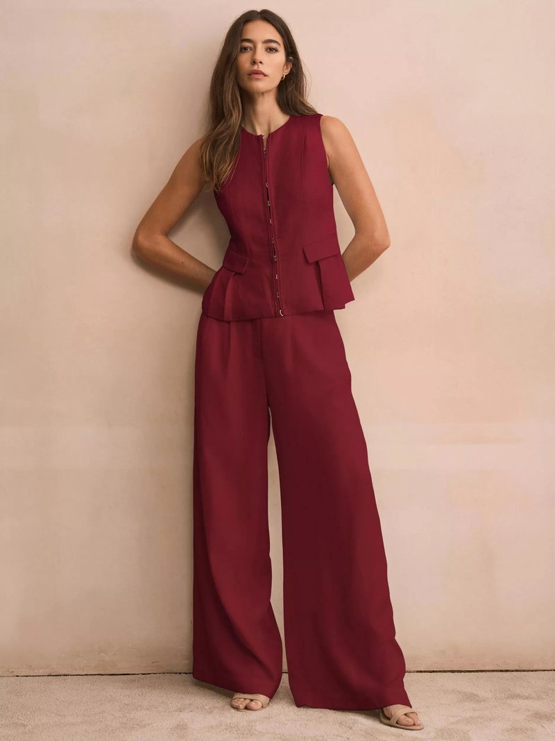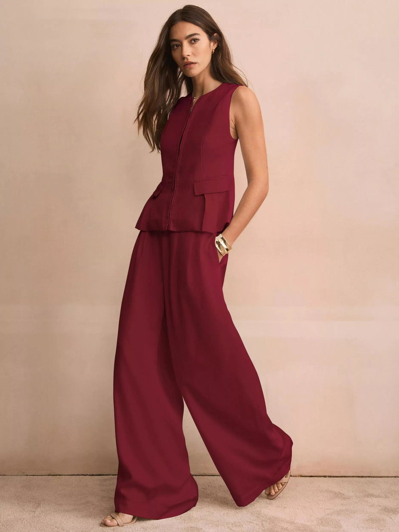 A pair of pleat detail wide-leg trousers by Mint Velvet. The smart, high-rise design creates a flattering shape and offers comfort all day, making them a versatile choice.