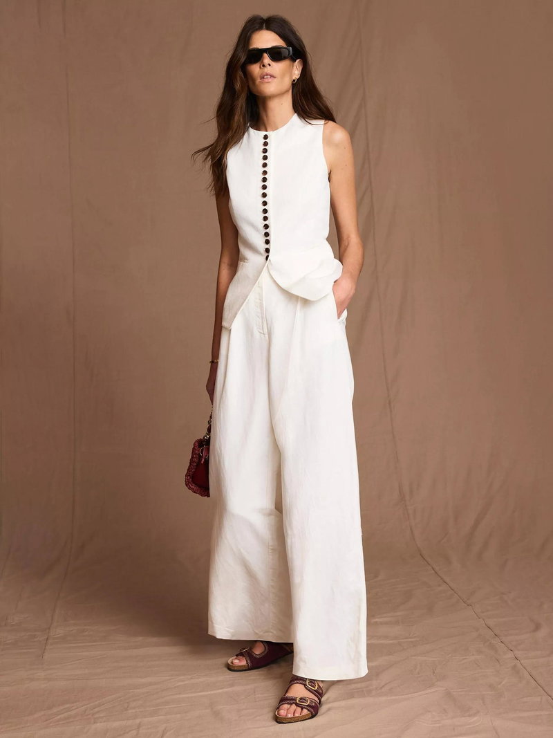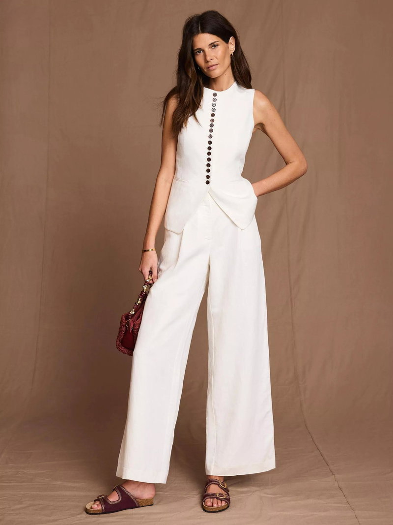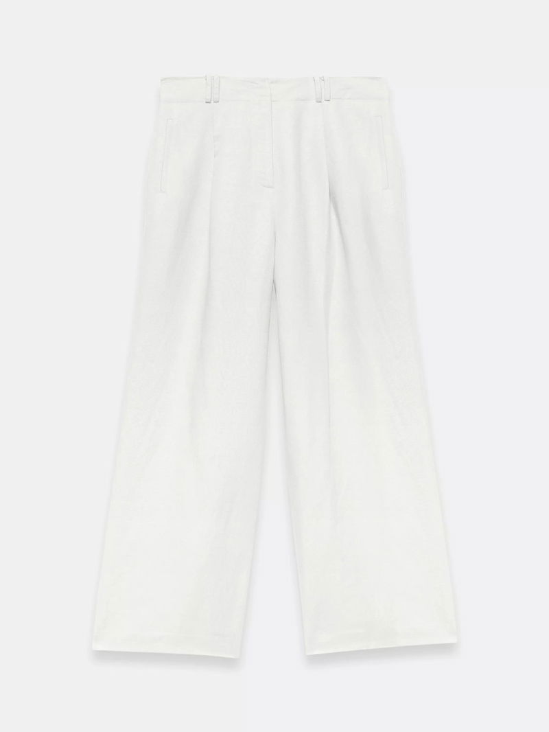 A pair of confident, exaggerated wide-leg trousers from Mint Velvet crafted from a linen-blend. They are designed to sit high on the hips with a concealed zip and a regular length.