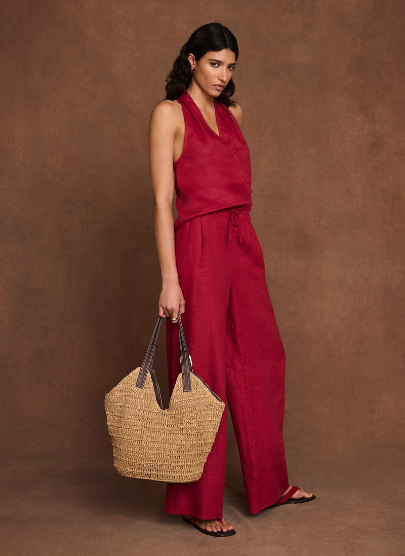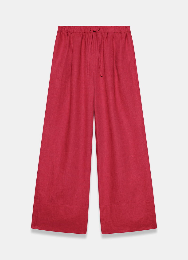 Linen Drawstring Wide Leg Trousers.