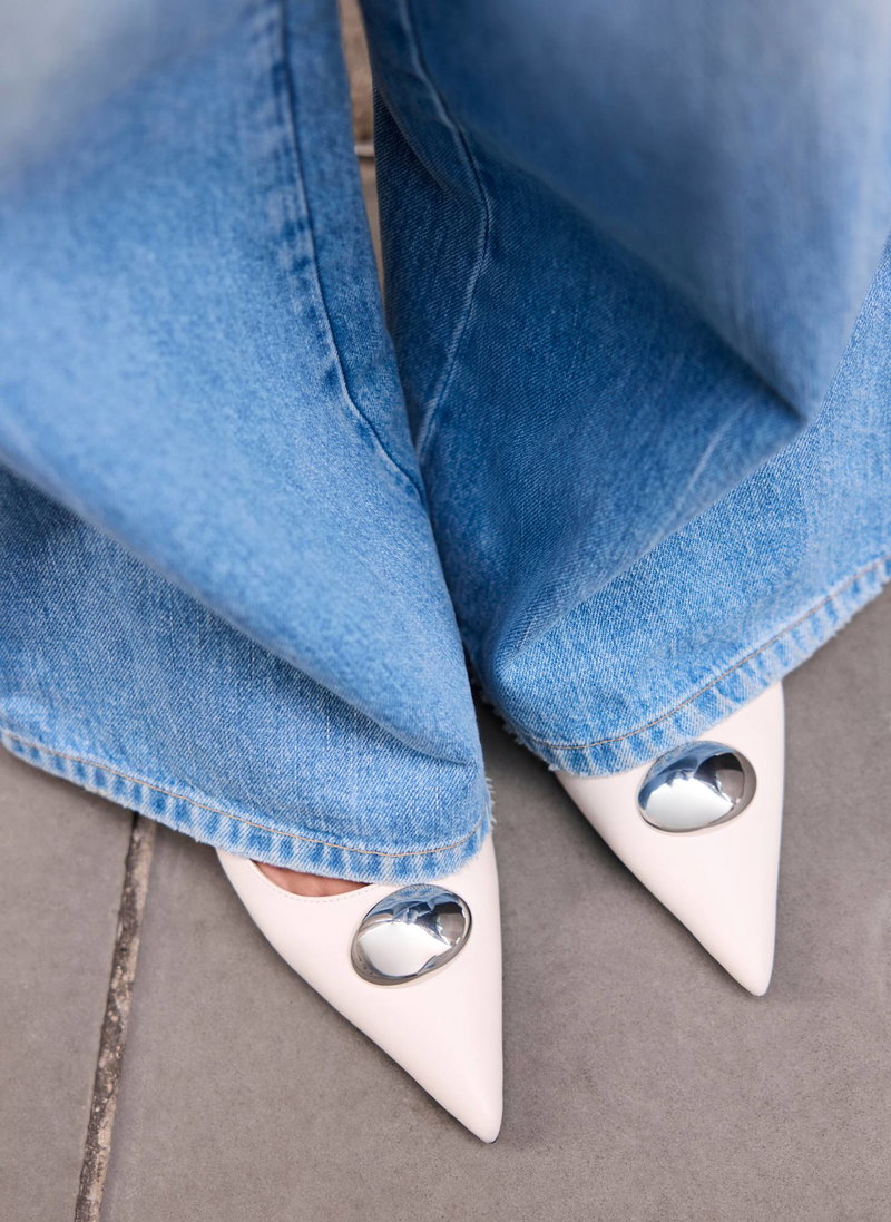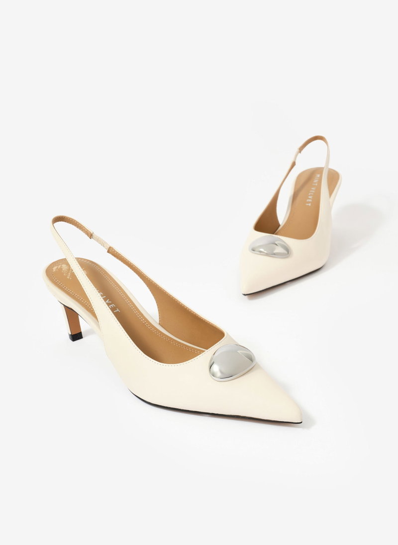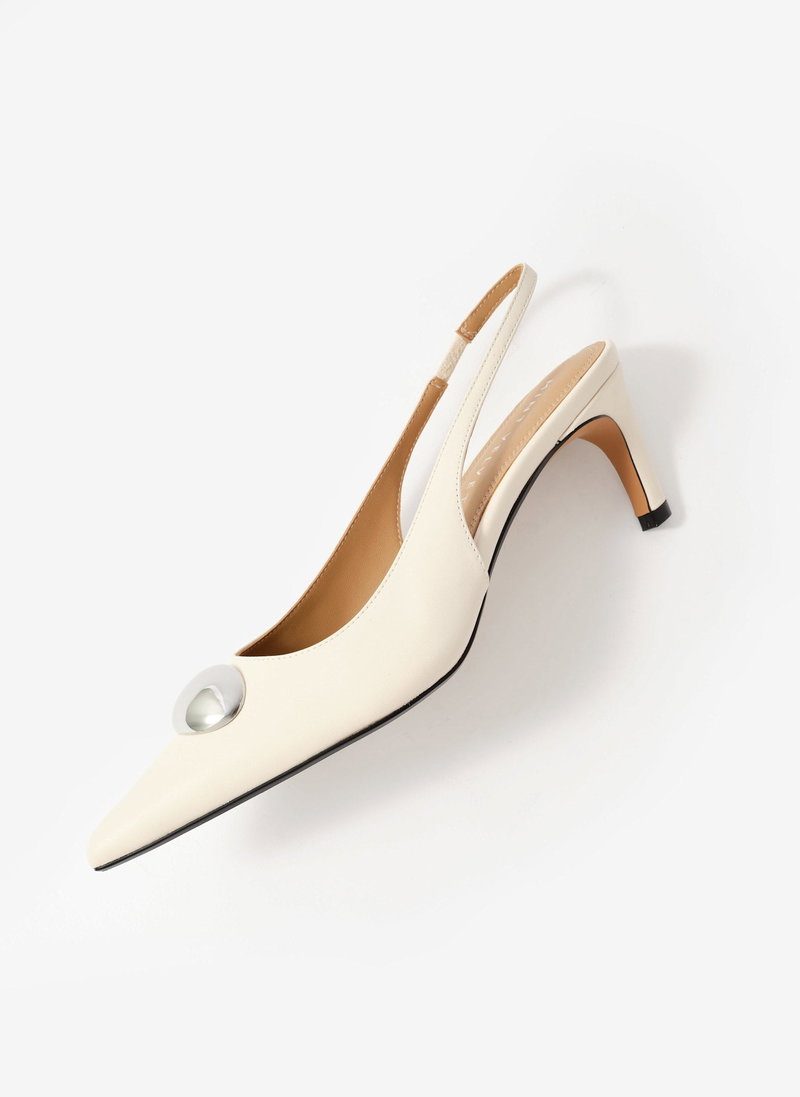 Ren White Leather Sling Back Heels