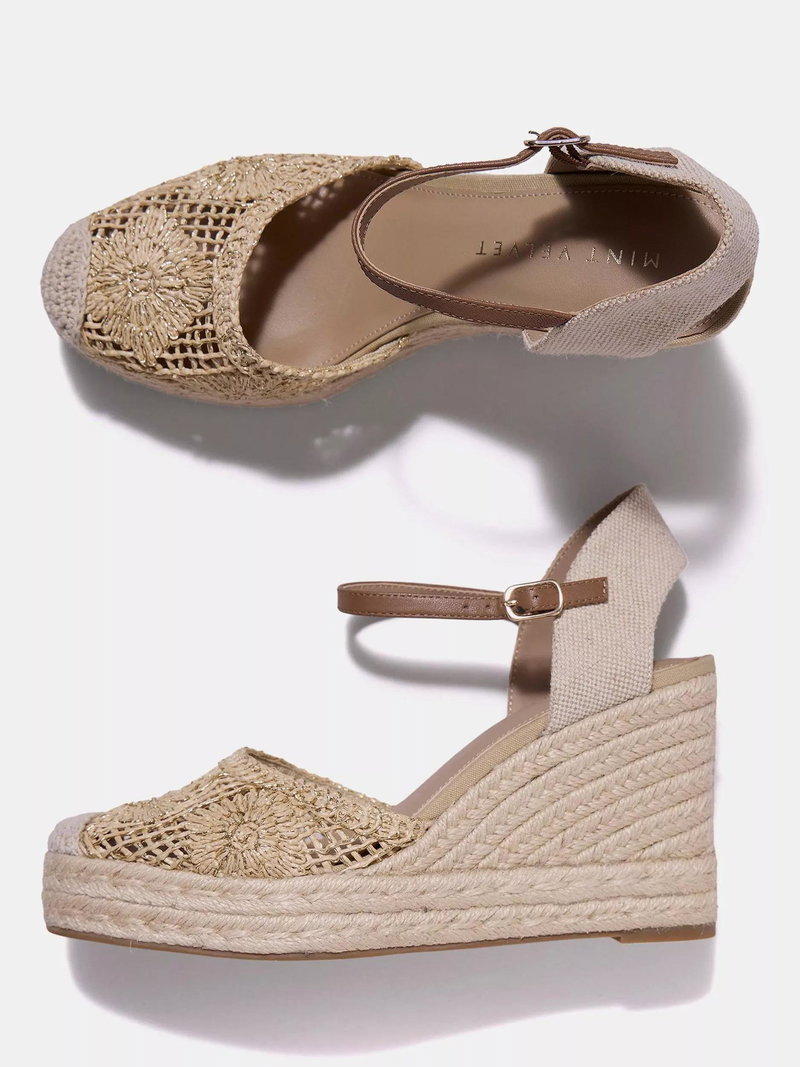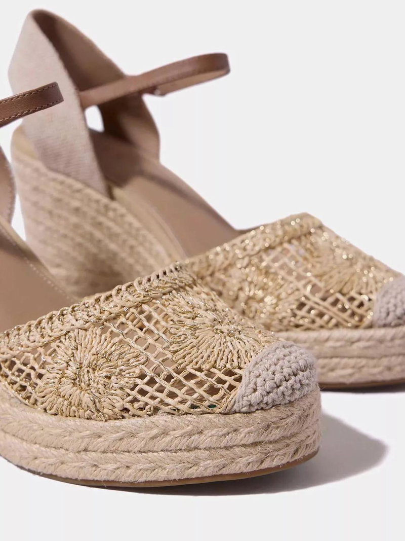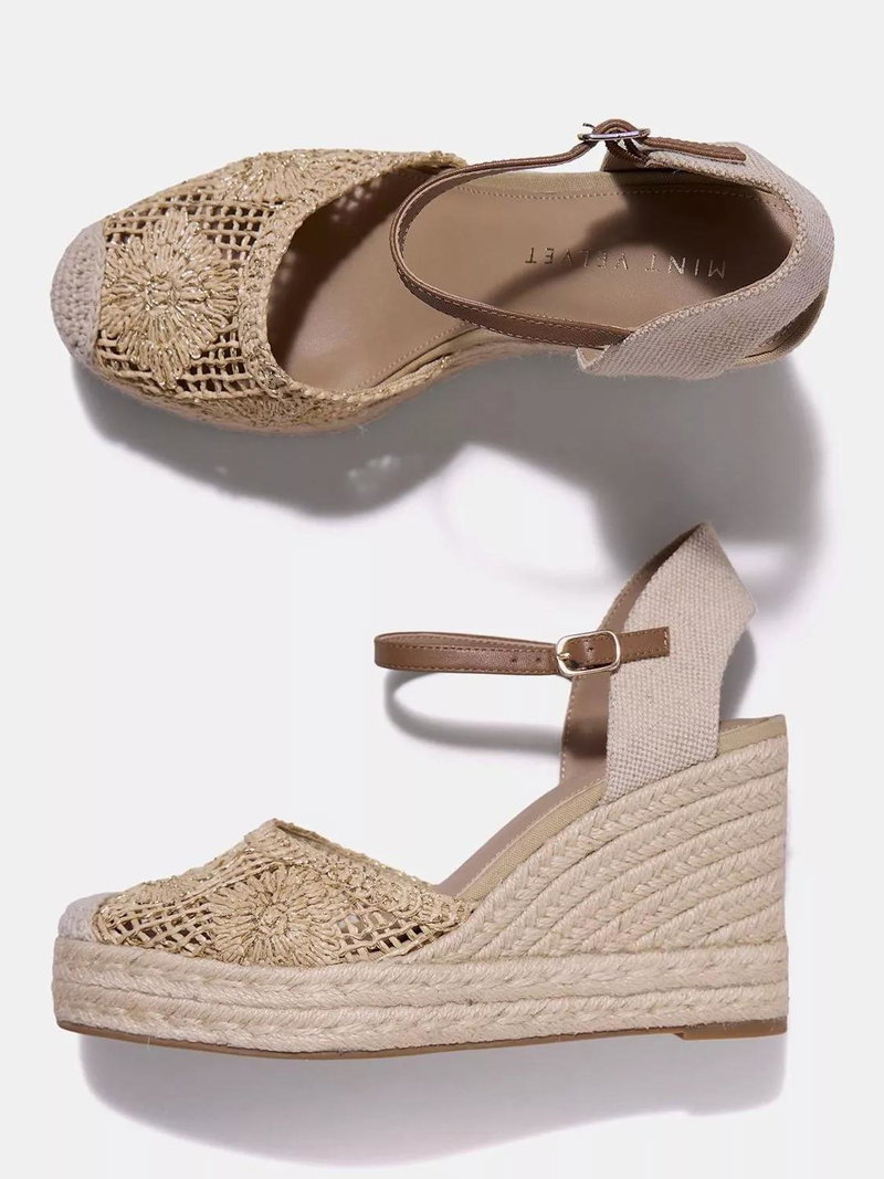 Heeled espadrille sandals by Mint Velvet, crafted with supple leather uppers and finished with an open toe. A high rope wedge gives extra lift, while the adjustable buckle ensures a supportive, confident stride from day to night.