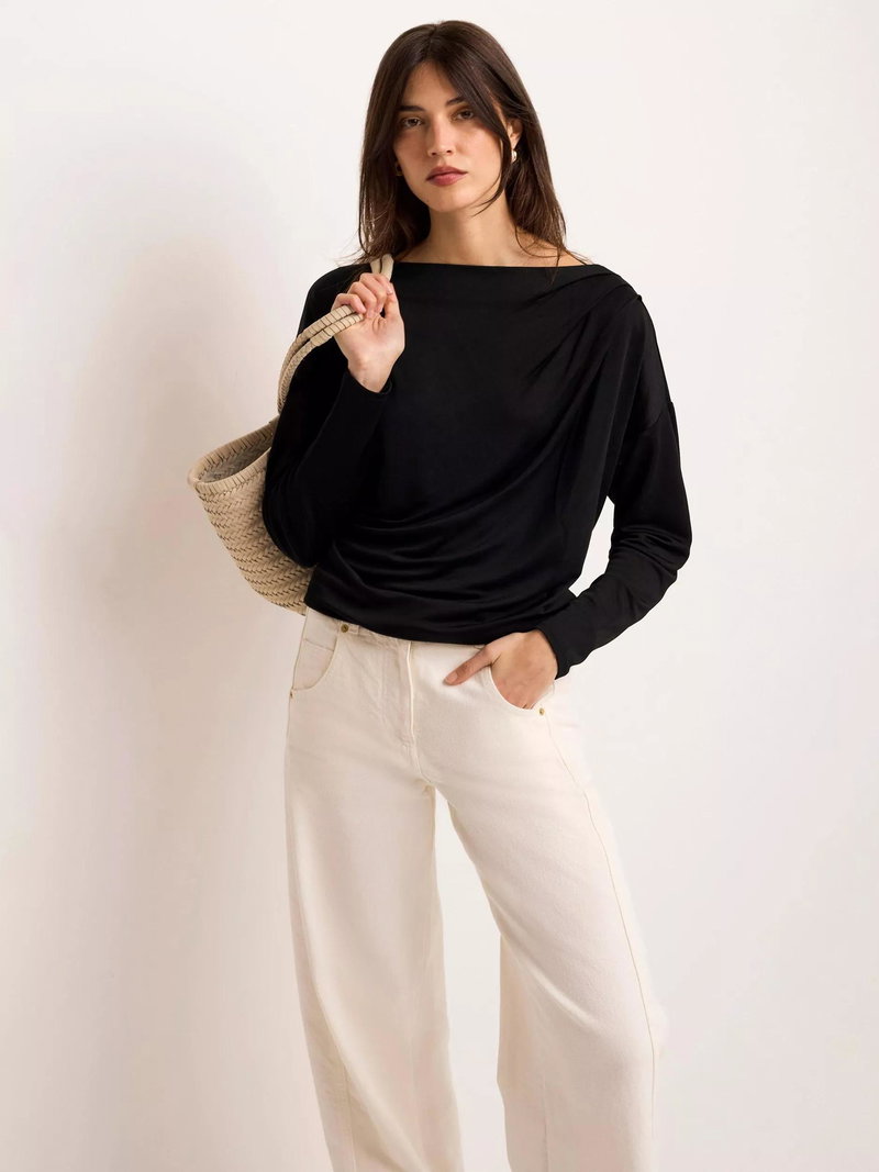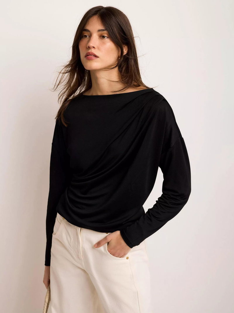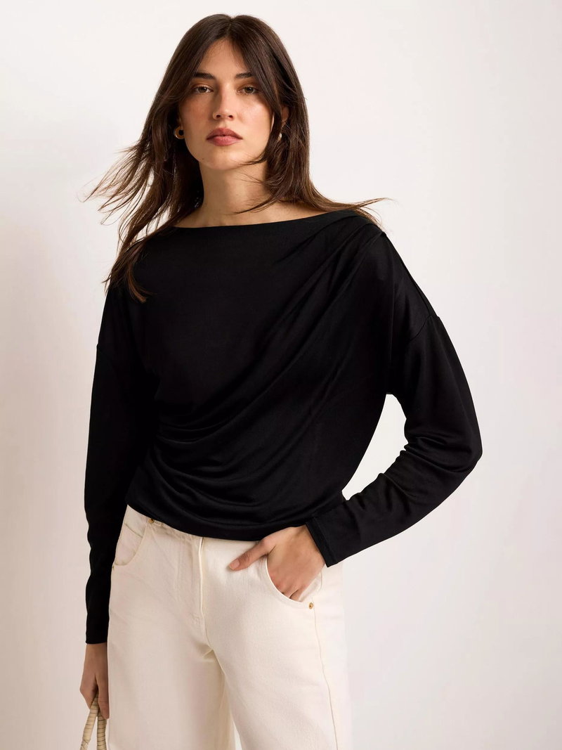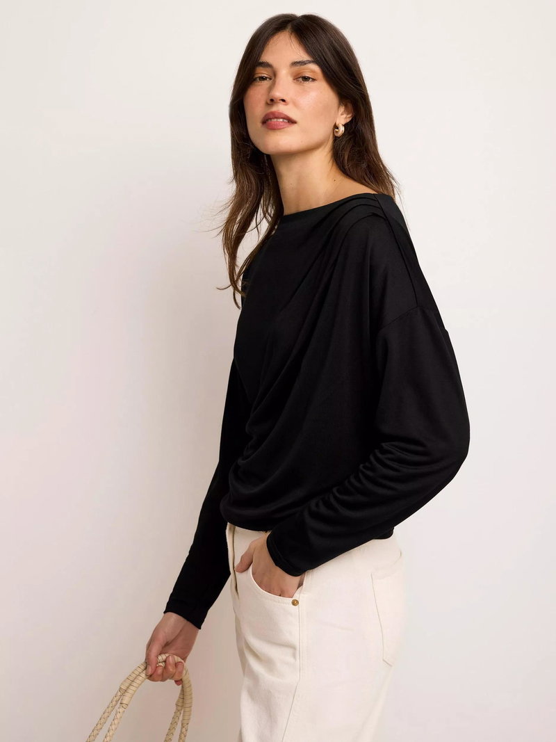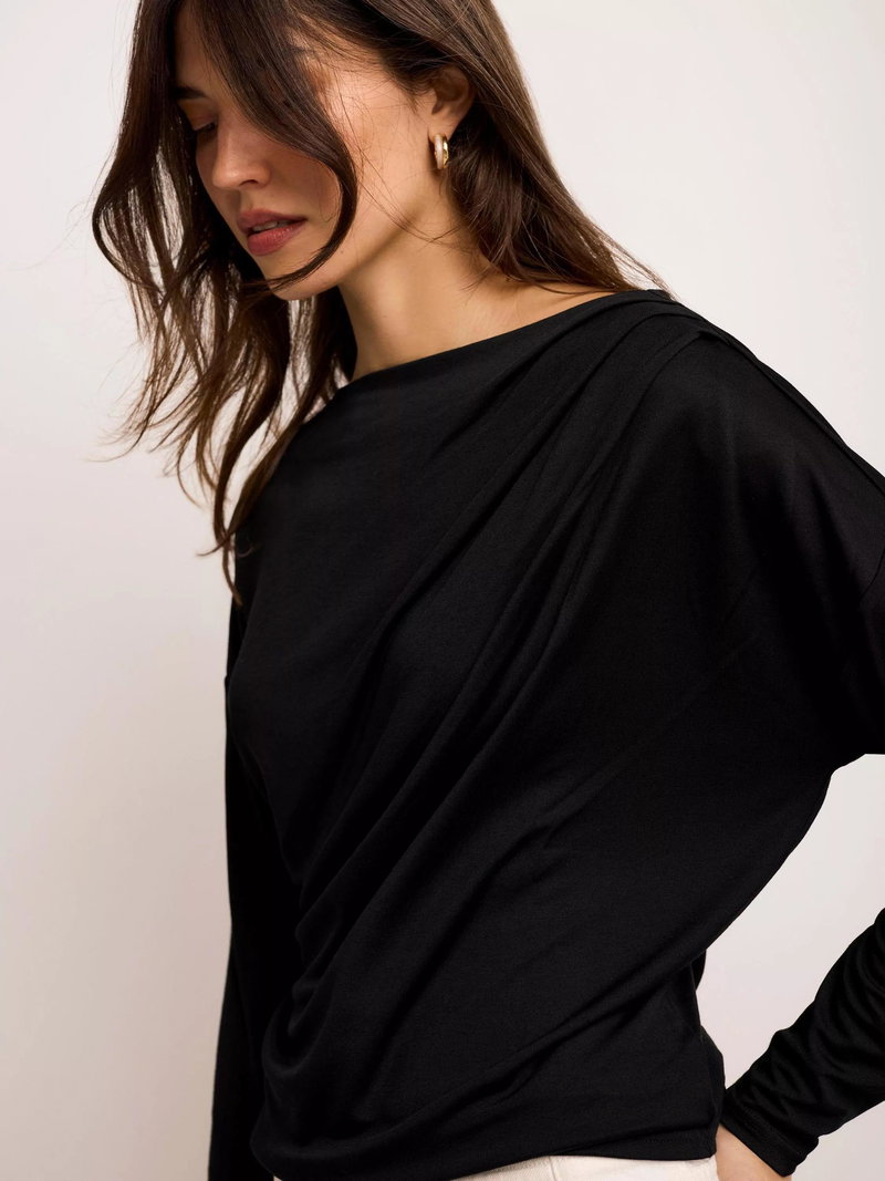 Ruched Batwing Top, Black