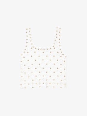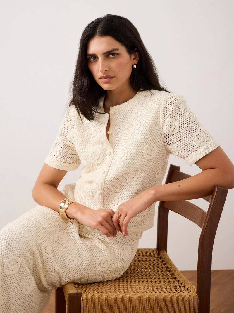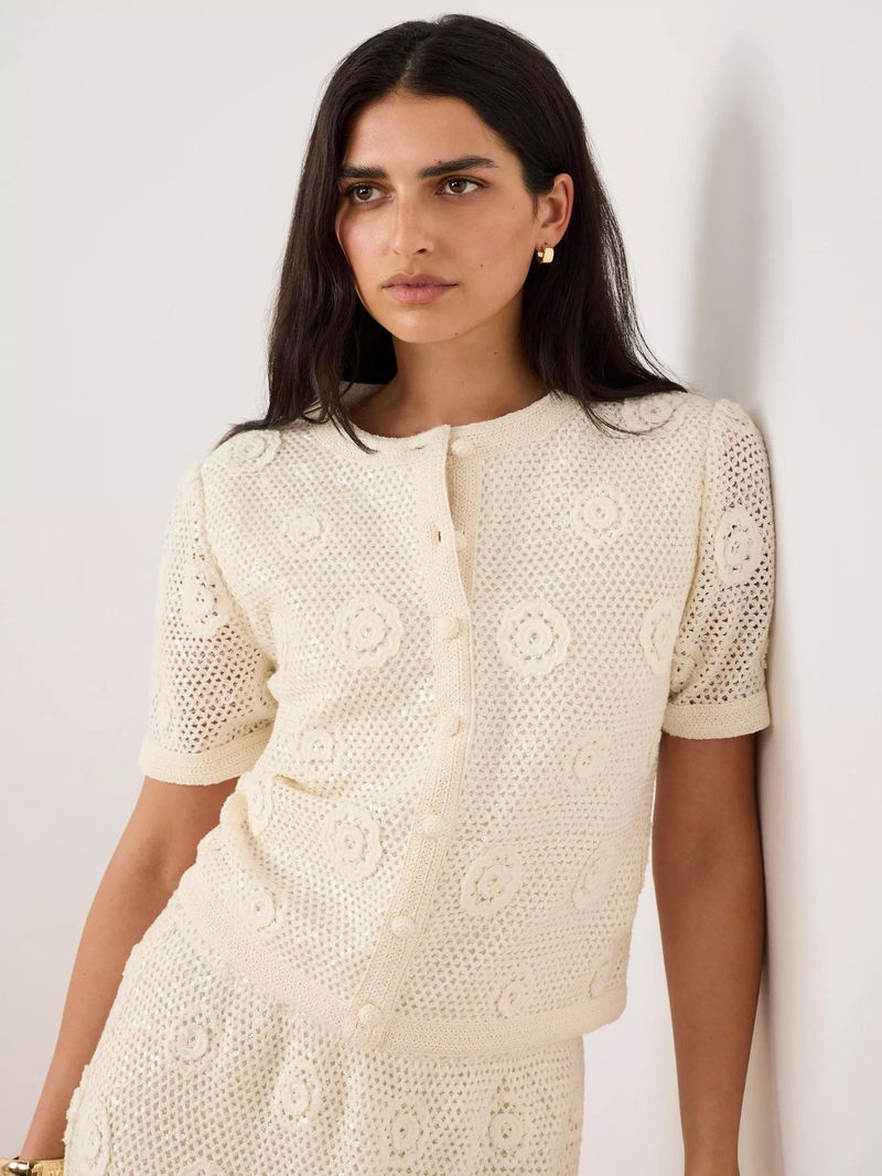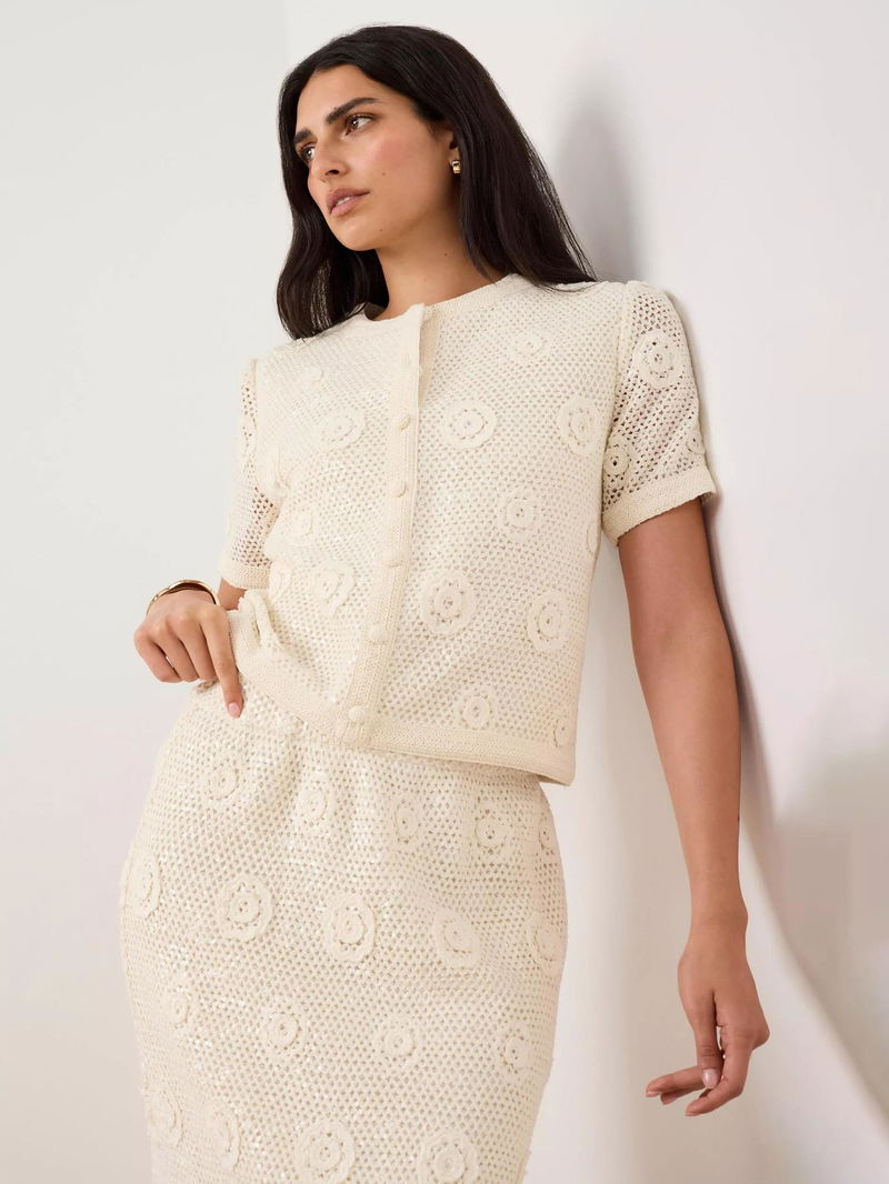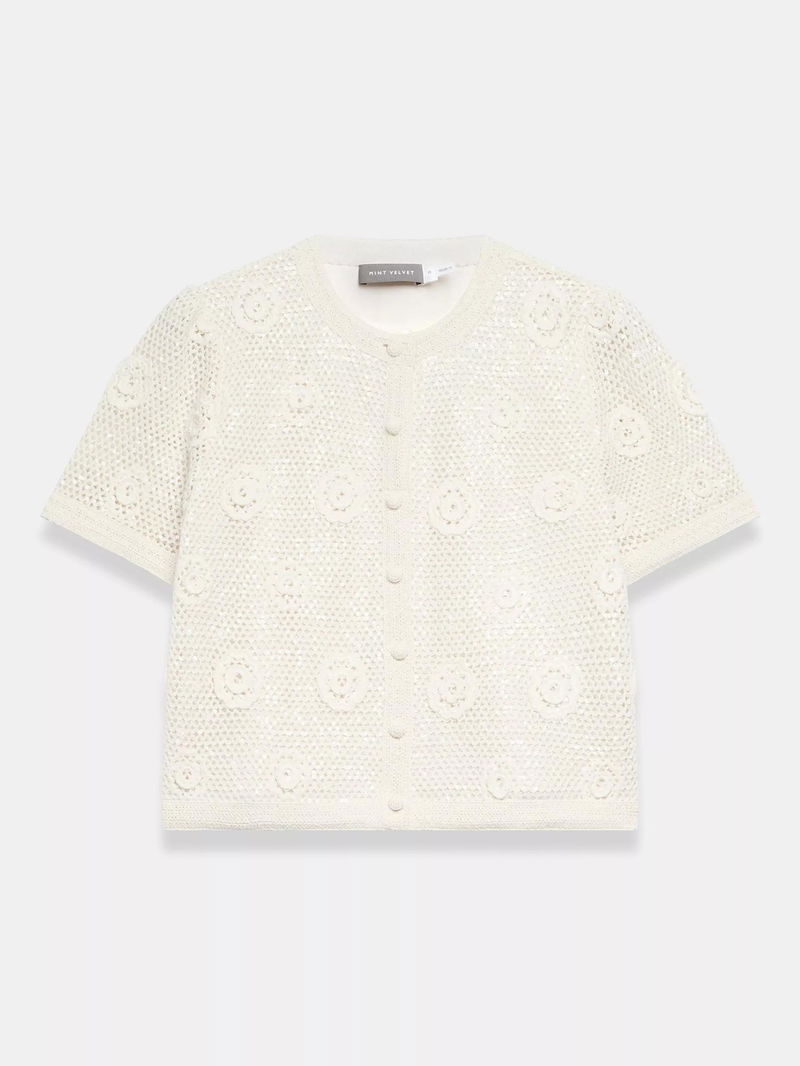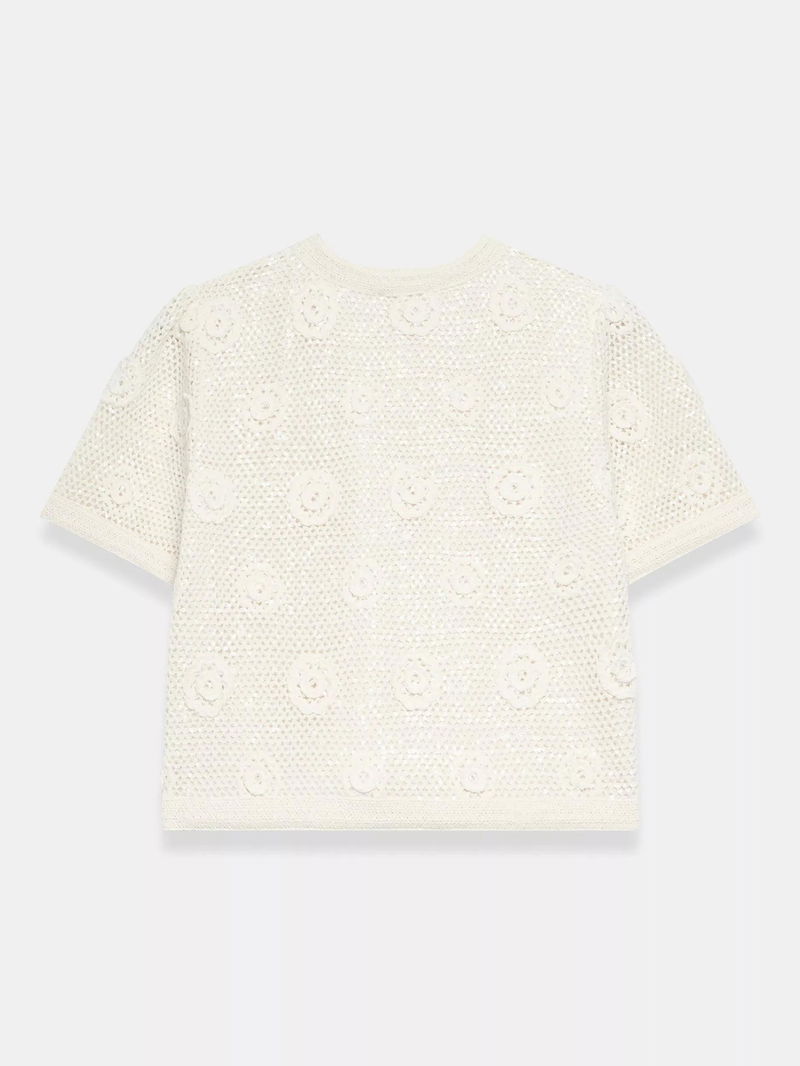 Sequin Floral Crochet Top, Natural