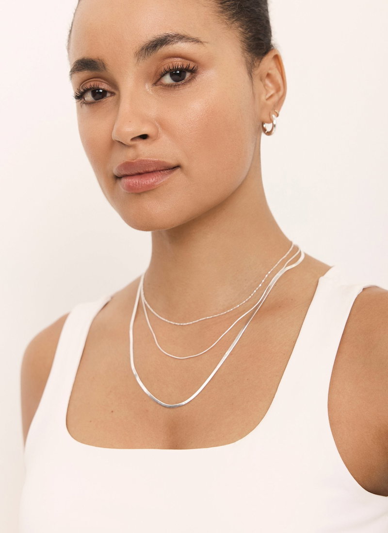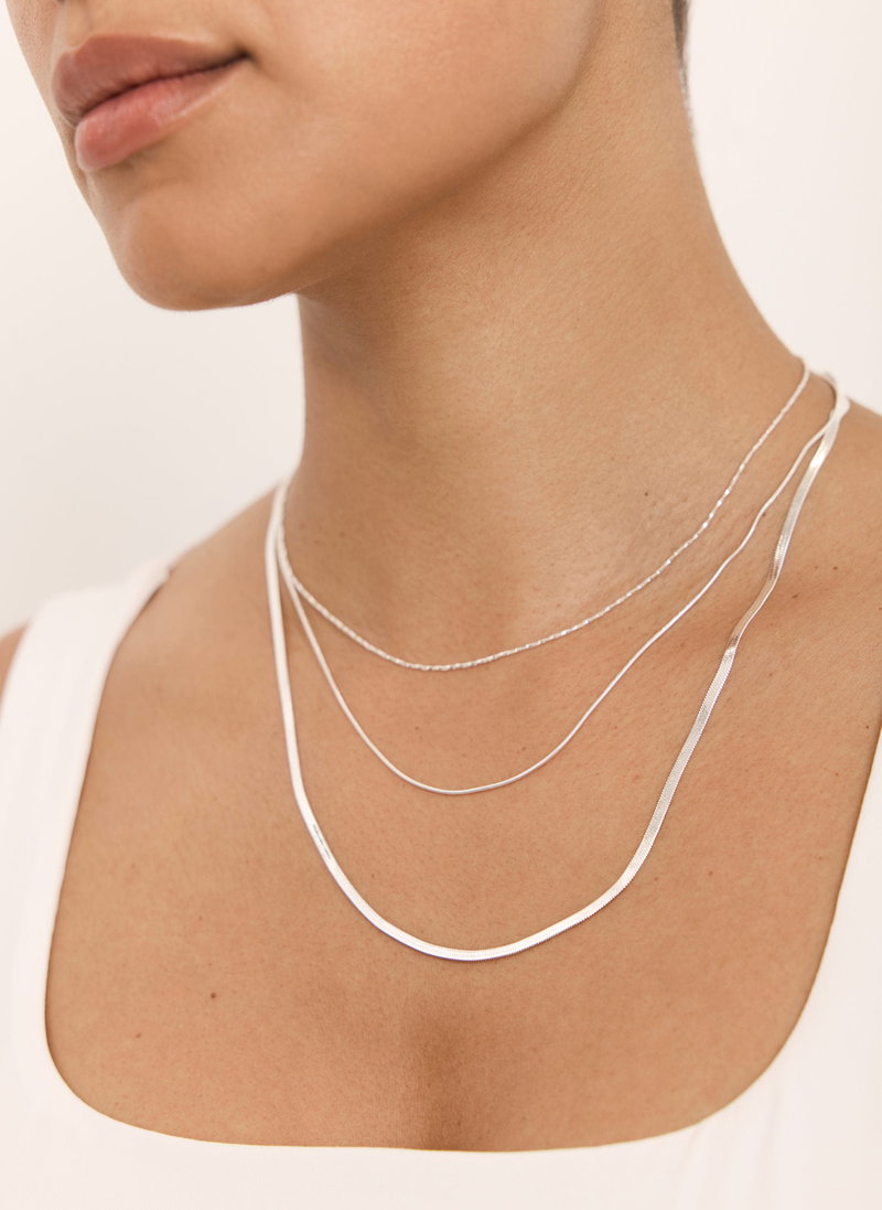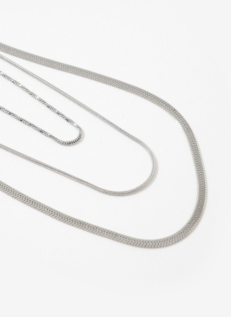 Silver Stainless Steel Triple Layered Necklace