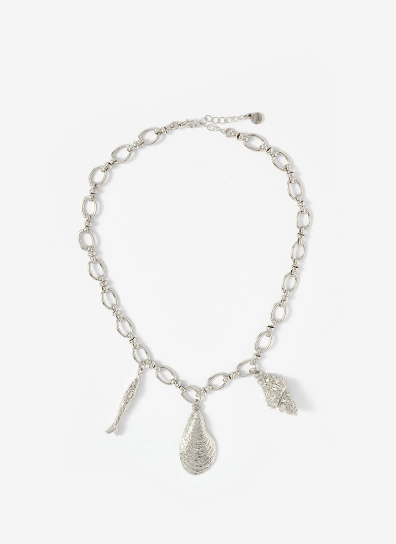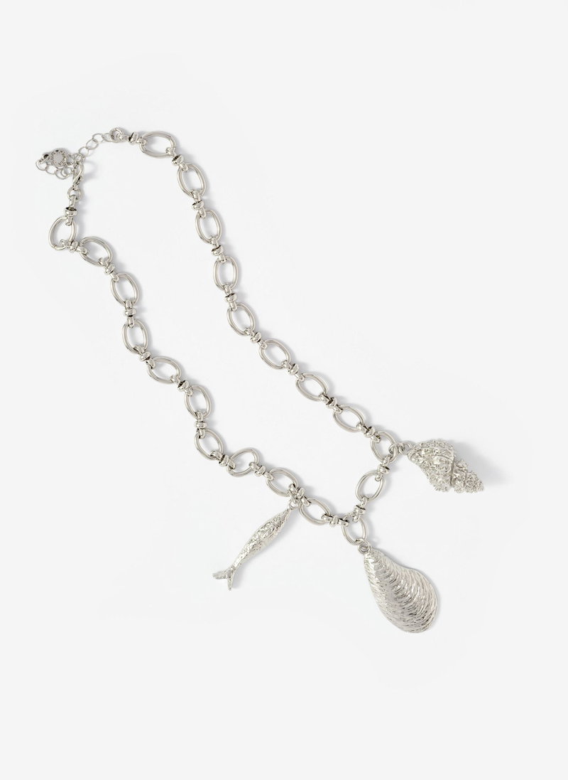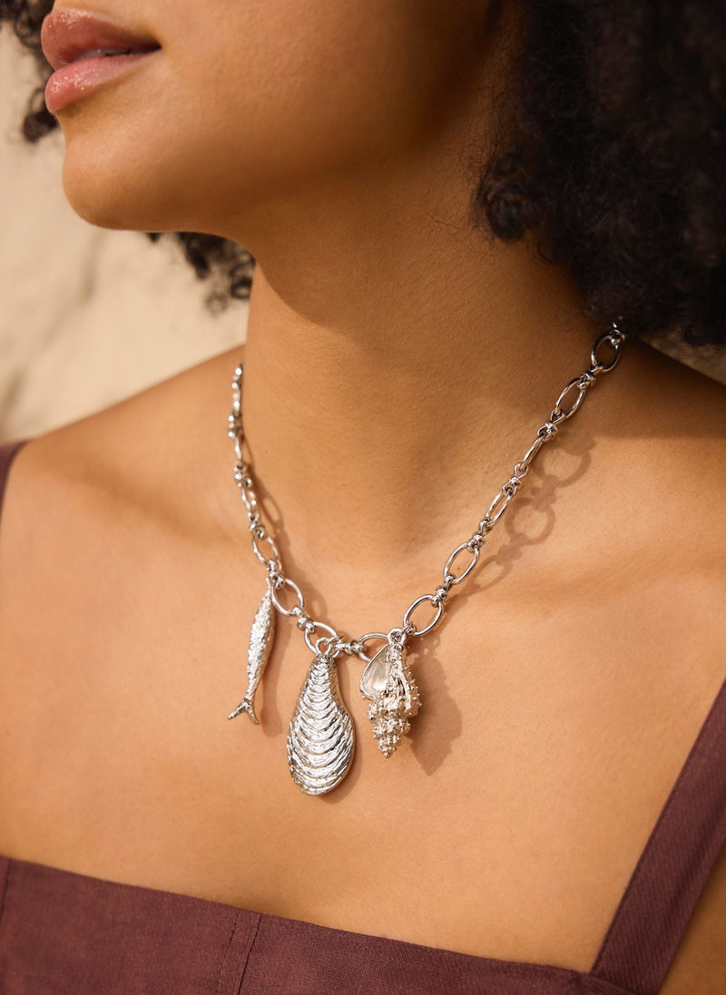 Silver Tone Shell Statement Charm Necklace