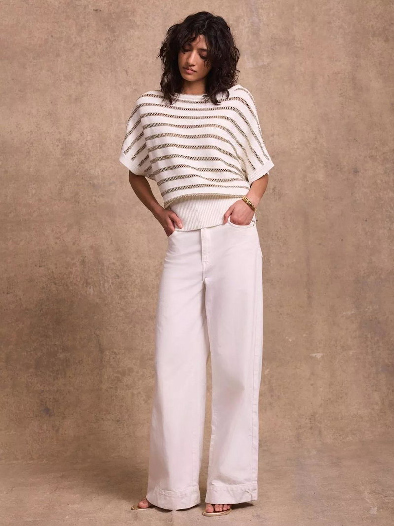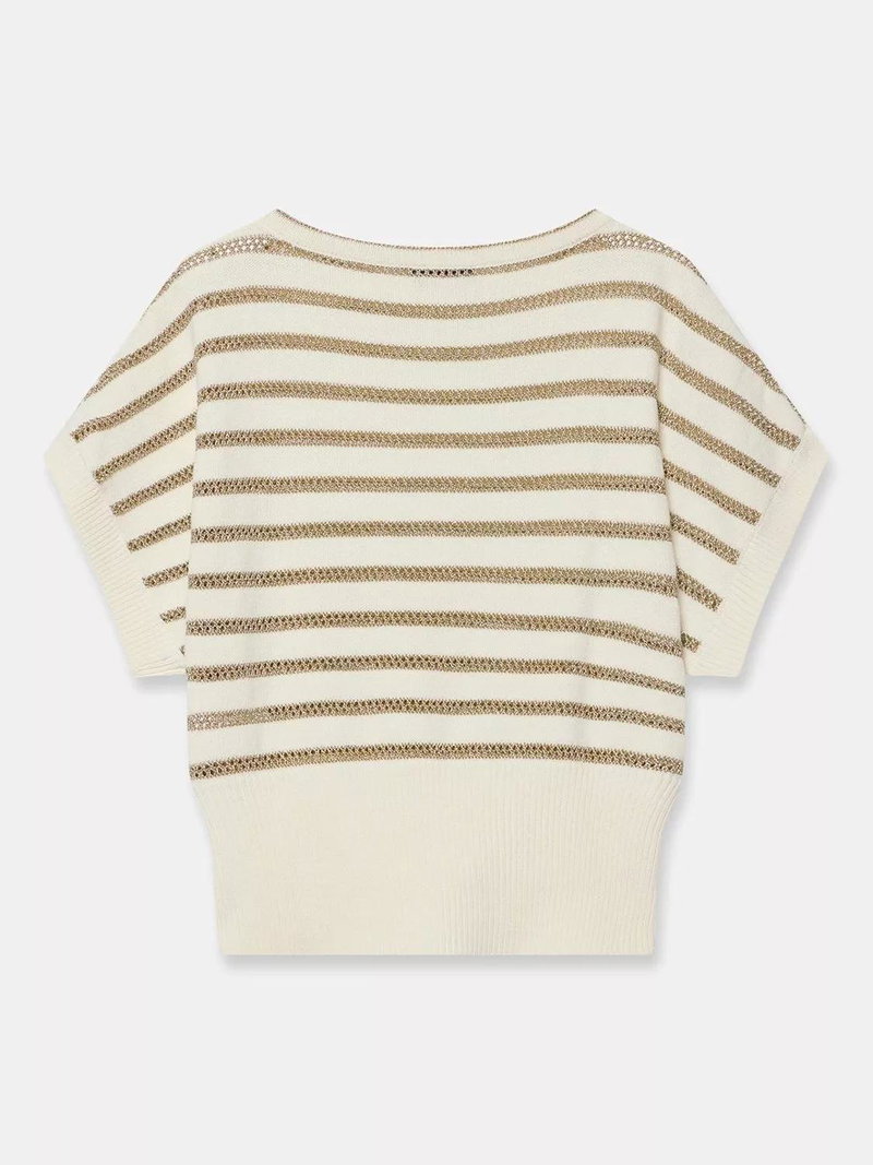 Slash Neck Metallic Stripe Top, Gold