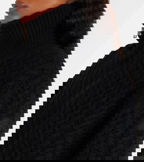 A wool-blend cardigan with a crew neckline, long blouson sleeves, square pockets with gold-tone button fastenings through the front.
