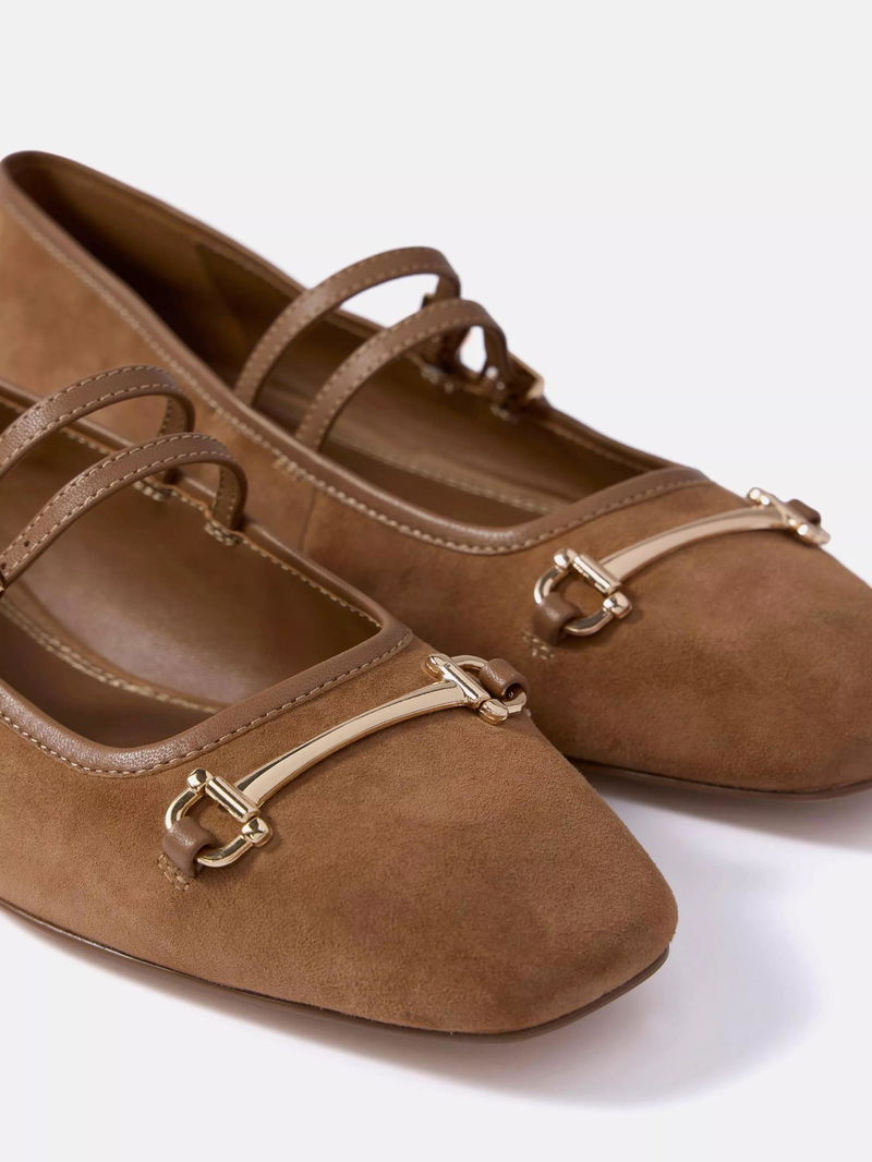 A pair of suede ballet pumps, crafted with a closed square toe and a supportive buckle fastening. A low, flat heel delivers comfort for your everyday plans while the leather lining keeps each stride feeling fresh.