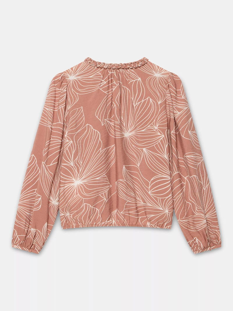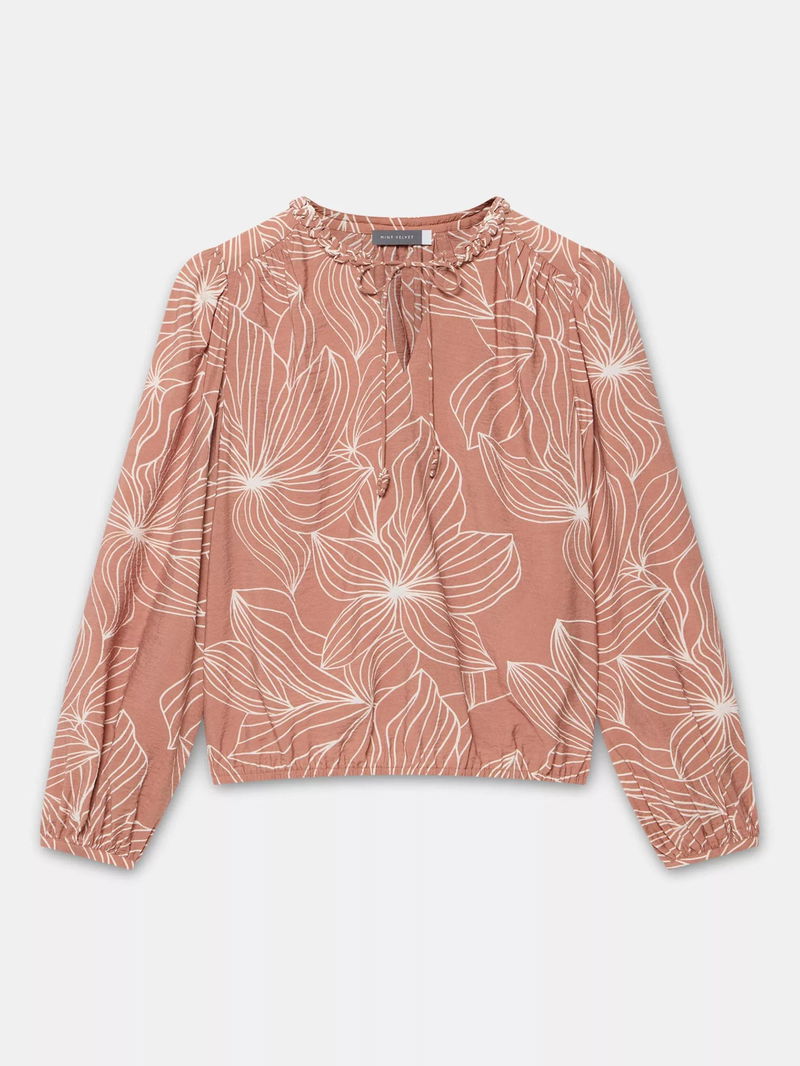 Tie Neck Floral Blouse, Camel Pink