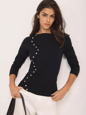 A cotton-blend jumper featuring a slash neckline, long sleeves and button detailing.