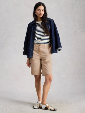 Button Front Chino Shorts.