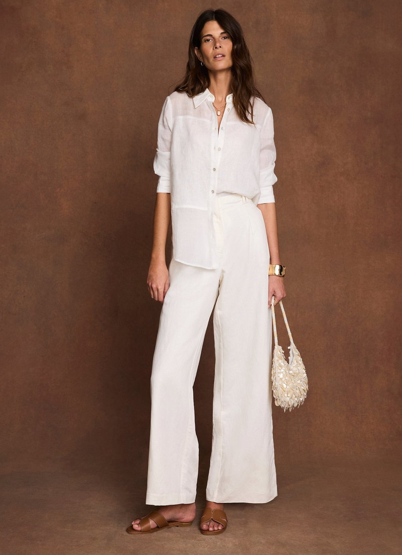Made with at least 50% linen. Linen is made from the fibres of the flax plant. Flax is resilient and can grow in poor soil, using less water than cotton to produce.'