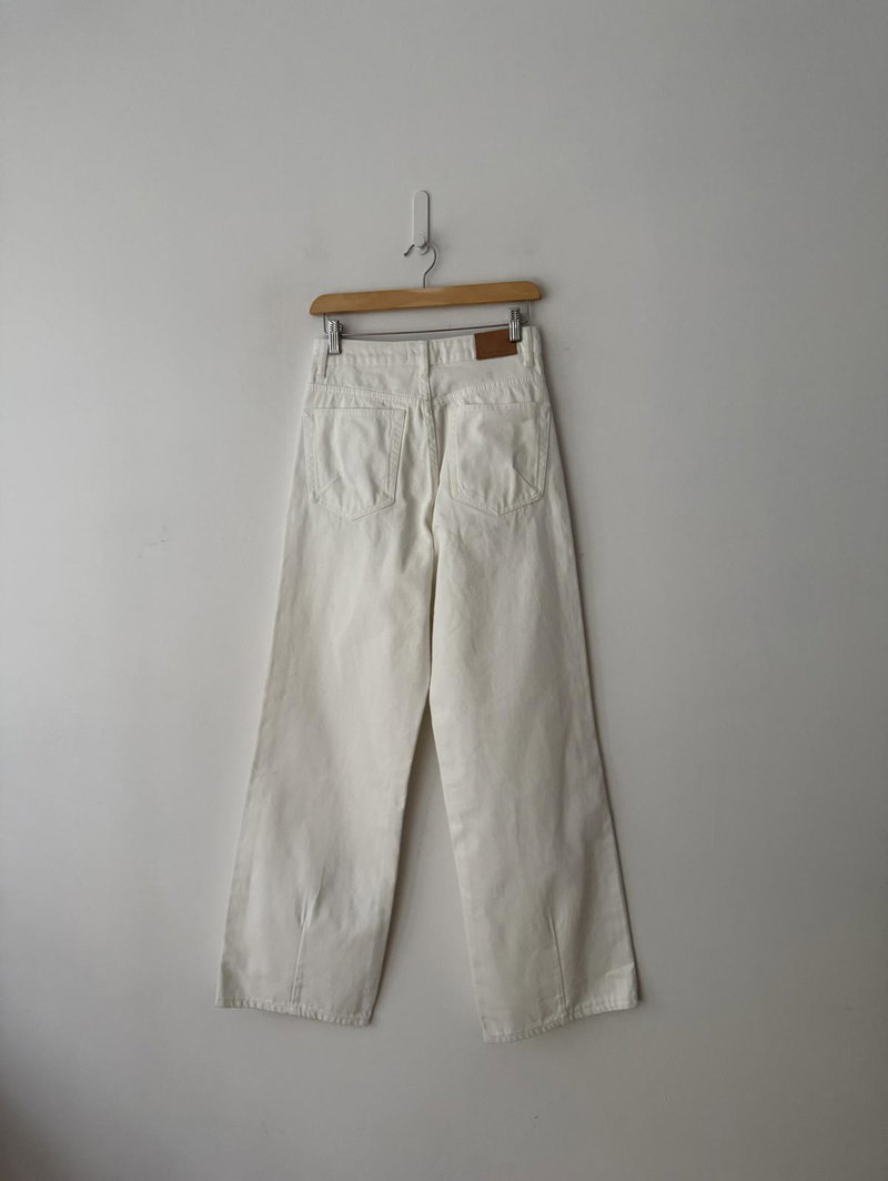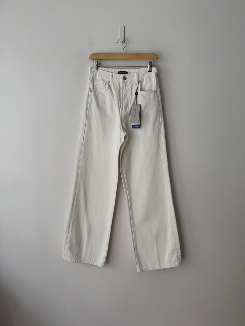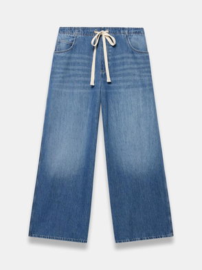 High waisted wide leg jean with a versatile roll up roll down hem.
