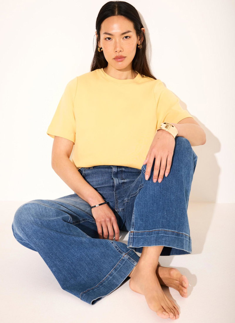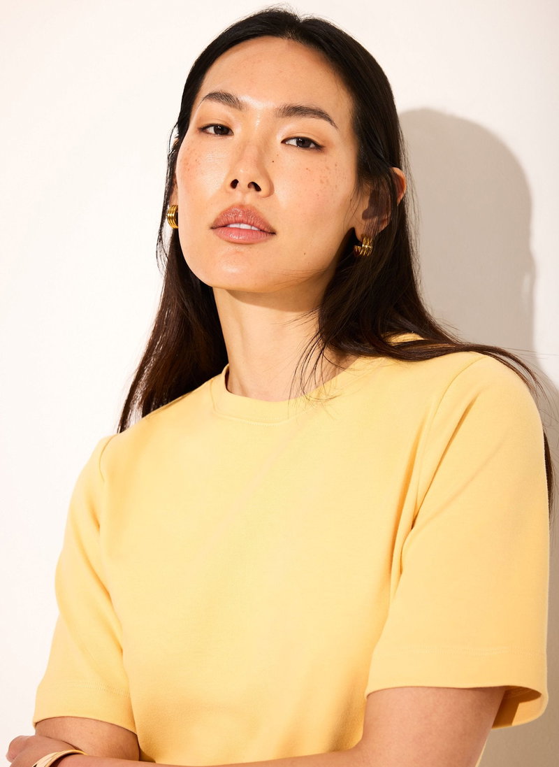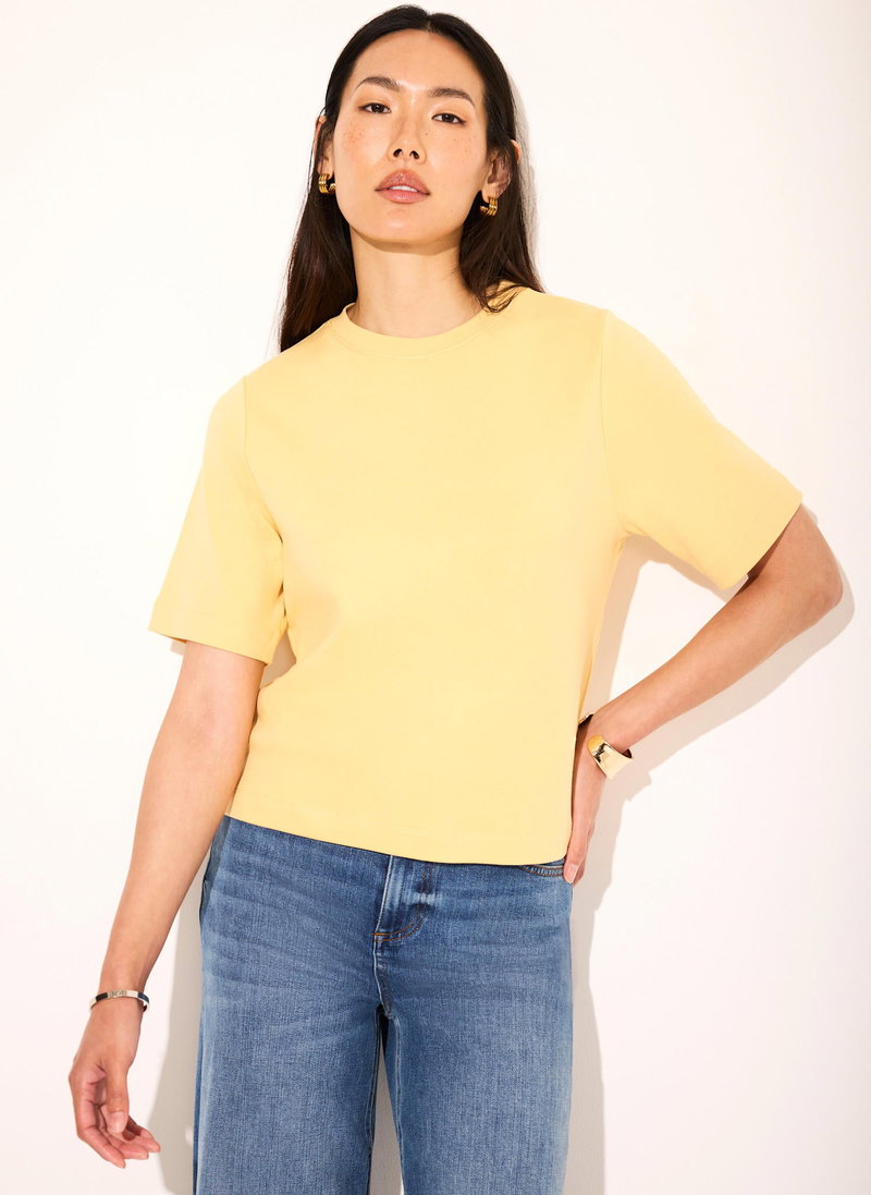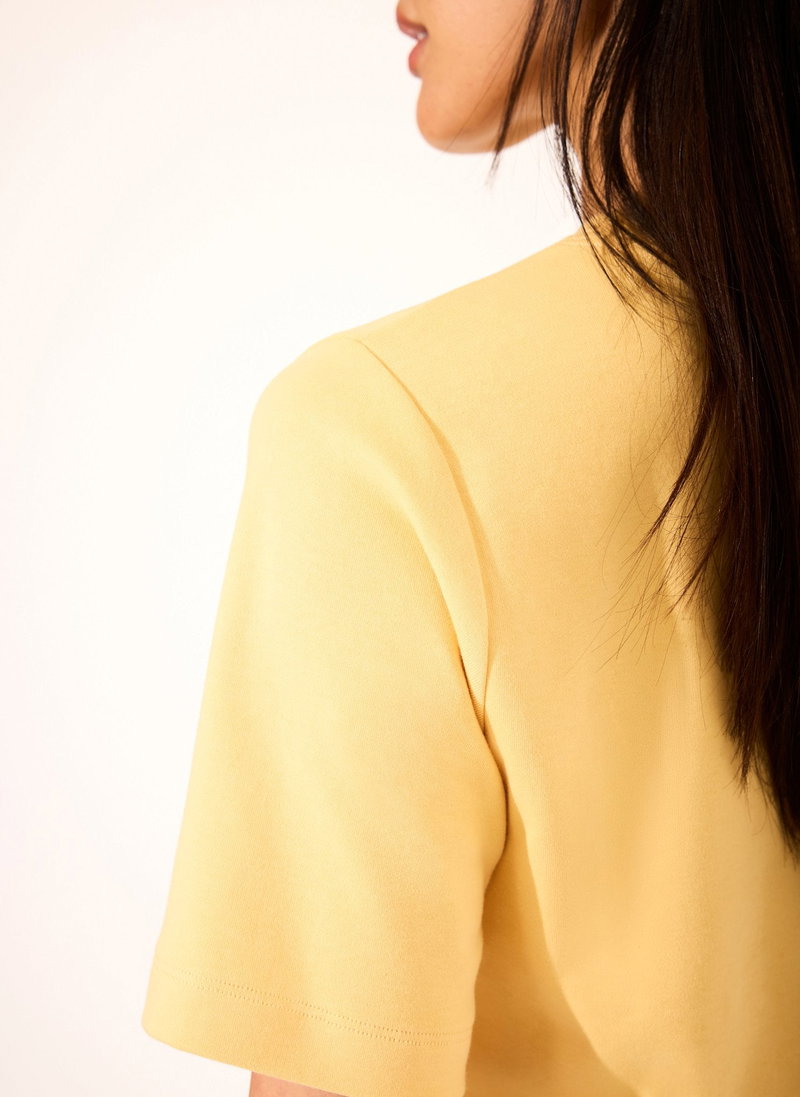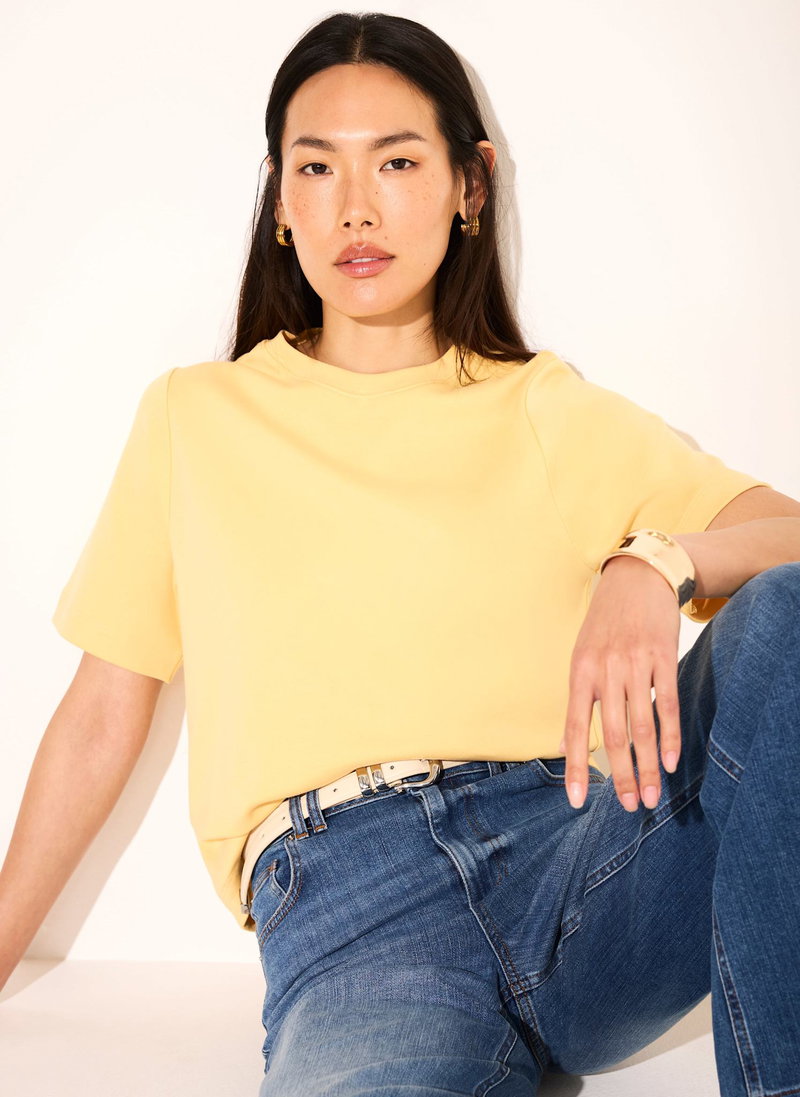 Yellow t-shirt featuring a crew neckline and short sleeves.