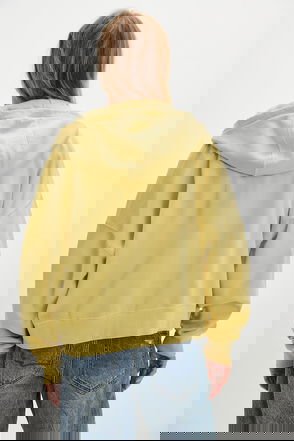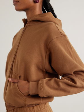 A hoodie with long sleeves, elasticated cuffs, welt pockets, split back featuring and a silver-tone zip fastening through the front.